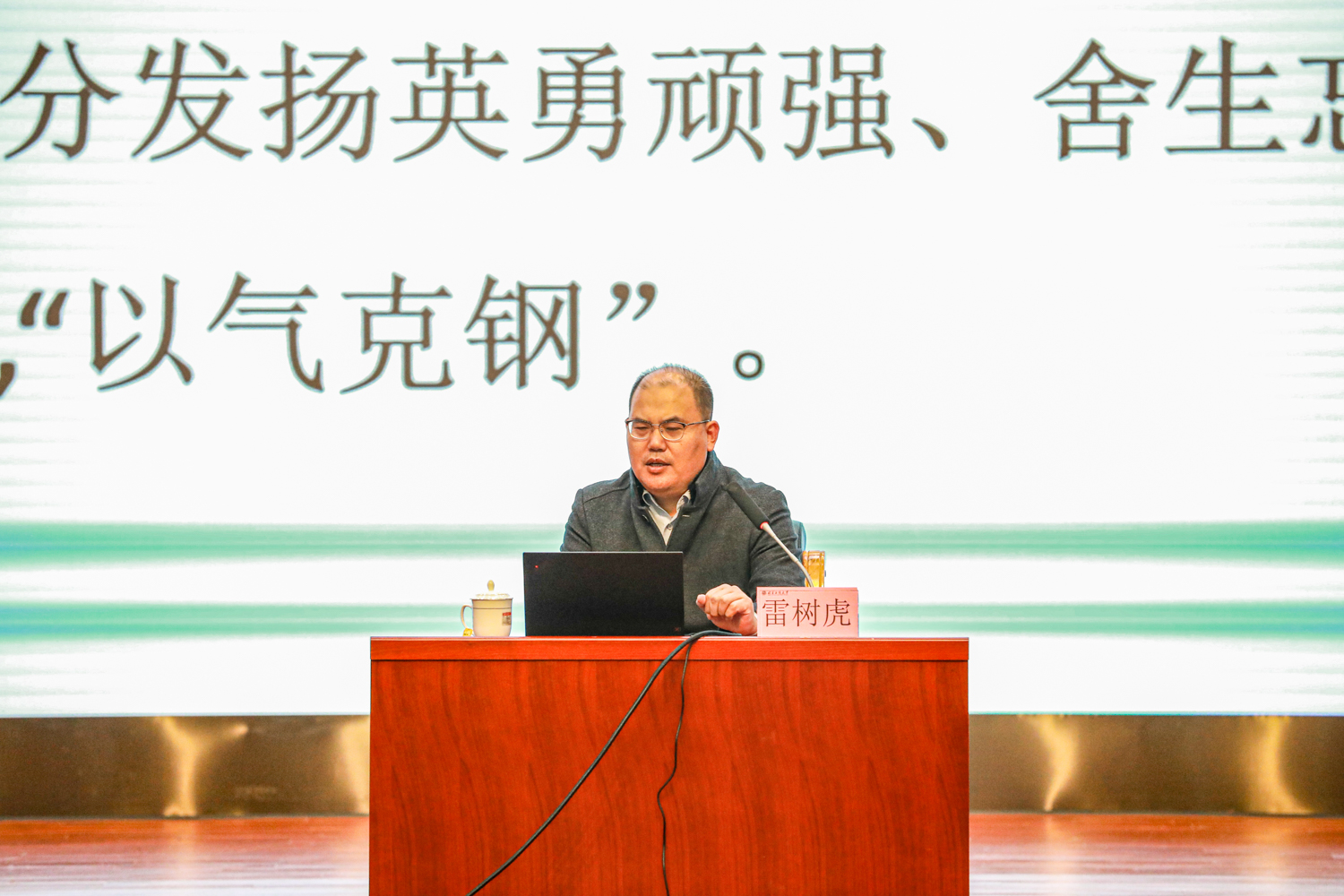 雷树虎强调,长津湖战役提醒着我们要时刻以史为鉴,发扬斗争精神,追求世界和平。我们要走现代化强军道路,建设“钢铁长城”。“为有牺牲多壮志,敢教日月换新天”,英雄们的牺牲,换来了山河无恙,换来了太平盛世。讲座最后,雷树虎带领同学们共同致敬最可爱的人——中国人民志愿军。希望年轻一代们传承弘扬伟大抗美援朝精神,凝聚新时代磅礴奋进力量!