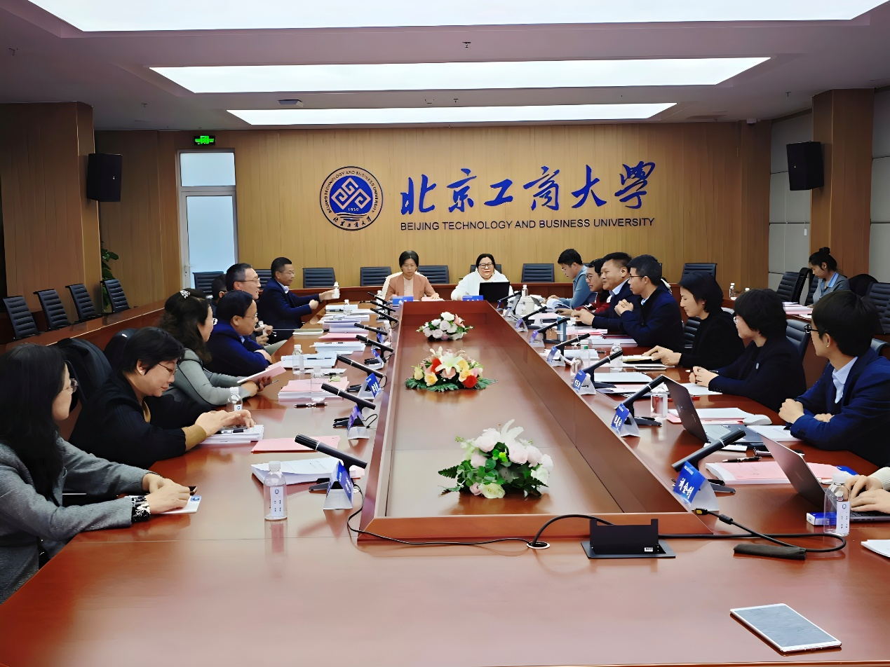 商学院院长何玉润教授从基本情况、学科现状、未来思考三个方面就工商管理学科建设情况进行汇报,系统梳理了学科发展历程、现有基础、特色优势、人才培养、科学研究、社会服务等方面的成果,对比了工商管理学科的优势与不足,并结合北京市对学校商科数字化转型的定位和要求,以及学校轻工食品行业特色优势,全面剖析了学科在商科数字化转型和工商一体化发展方面的做法,并就数字商学赋能首都经济高质量发展、财会监督与经济高质量发展、业财融合助力“工商一体化”发展、智慧物流与供应链提升产业链安全与韧性等未来规划,为学科冲A进行了系统谋划。
