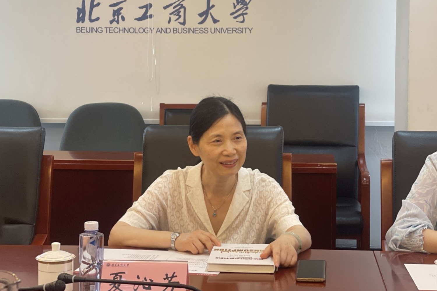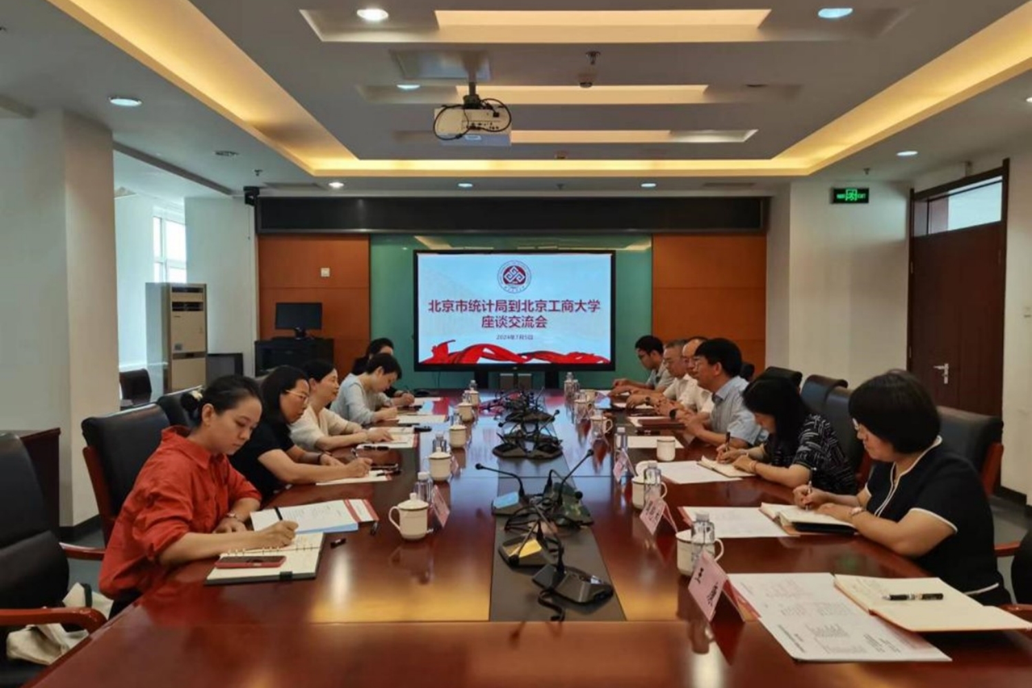 夏沁芳对我校的热情接待表示感谢,并详细介绍了北京市统计局的组织架构、职责范畴和工作重点。她高度肯定了北京工商大学在统计学及其交叉学科建设、人才培养、科学研究、服务首都等方面取得的一系列成绩,并就国际消费中心城市统计监测、智慧统计建设、科技创新统计制度等重点问题展开充分讨论,希望双方以此次调研交流为契机,切实发挥各自优势,围绕政府统计重点领域深化合作,共同服务首都发展。