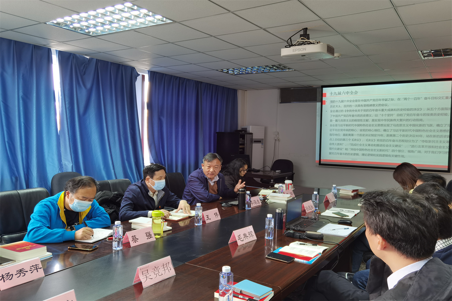 李海生以梳理党的十九次代表大会为切入点,围绕党在百年奋斗过程中取得的重大成就和历史经验,对党的历史进行了系统、深入的解读。同时结合学校、学院发展现状,表示学院上下要深入学习贯彻落实好党的方针政策,加强理论学习,提高政治站位,开拓创新,凝心聚力,为学校、学院发展及“十四五”规划开好局,起好步贡献力量。