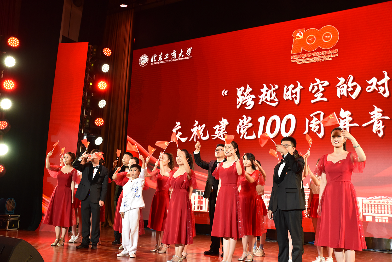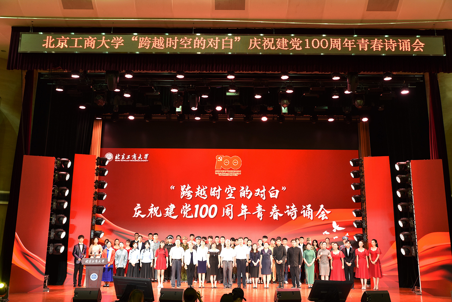 6月20日,北京工商大学在良乡主校区举办“跨越时空的对白”庆祝建党100周年青春诗诵会。学校党委副书记李中奇、北京团市委大学中专工作部部长刘炳全、北京学联驻会主席李徐铭出席活动,各职能部门领导、各学院党委(党总支)副书记、团委(团总支)书记以及团干部和青年代表们参加活动。