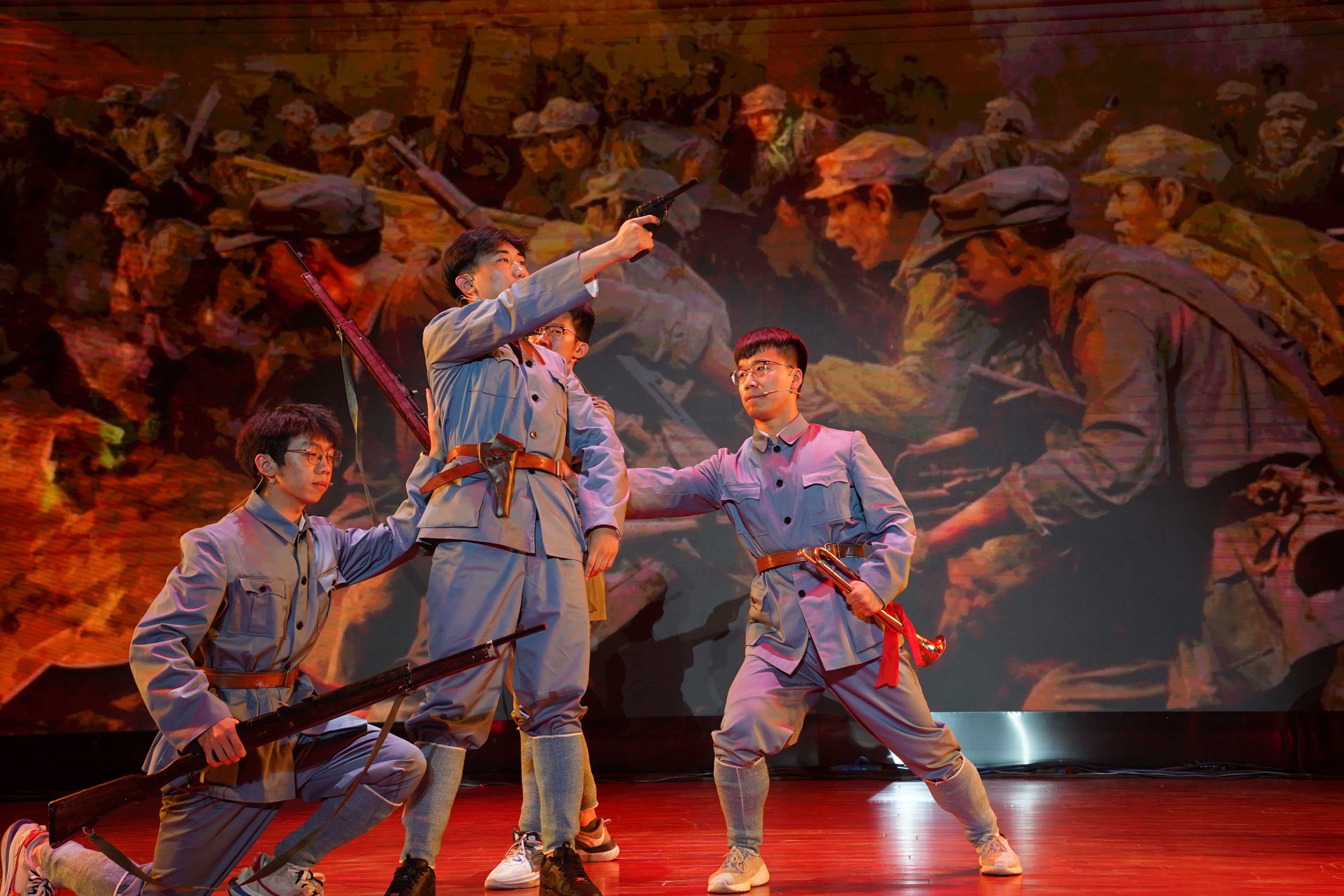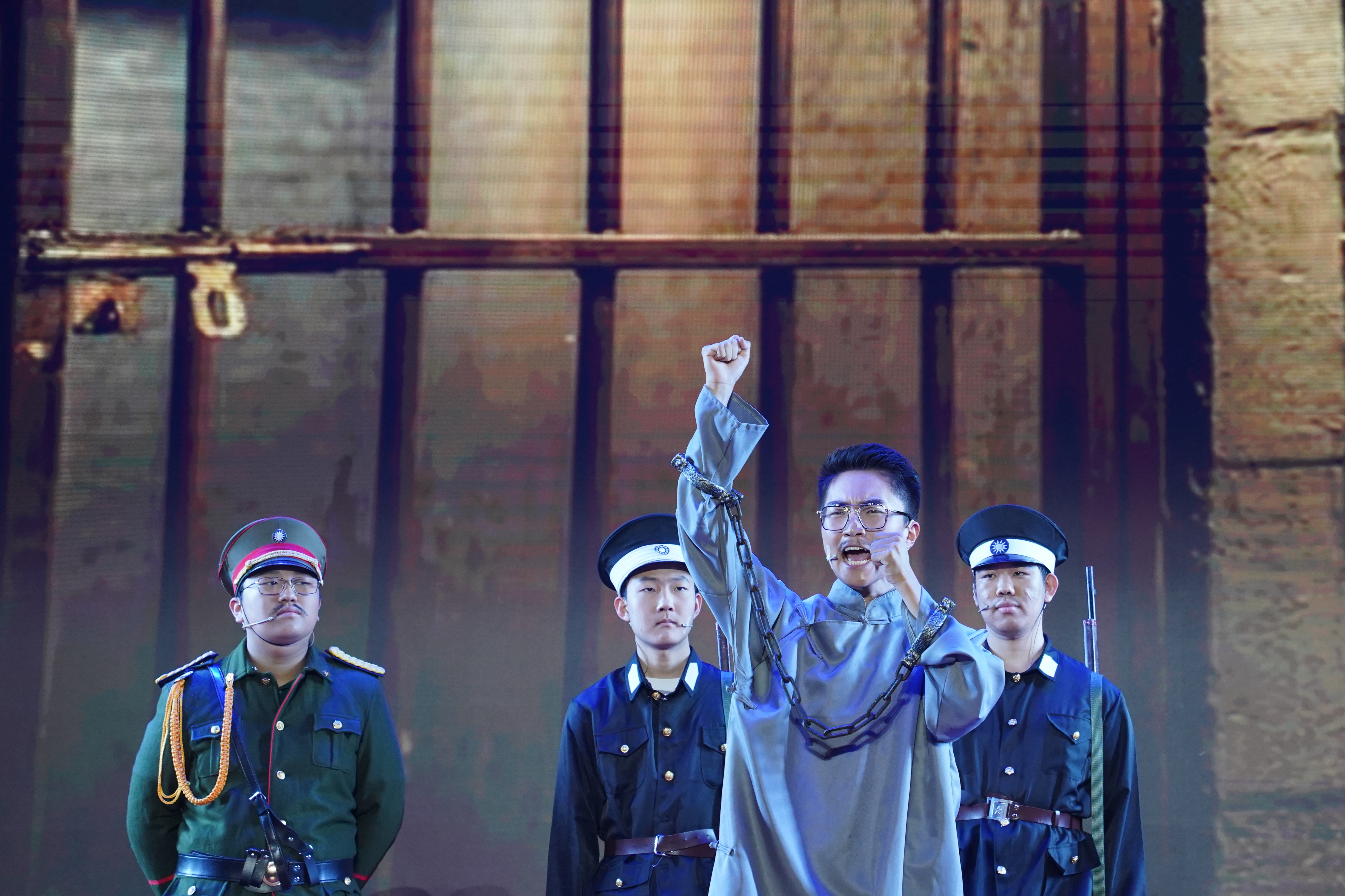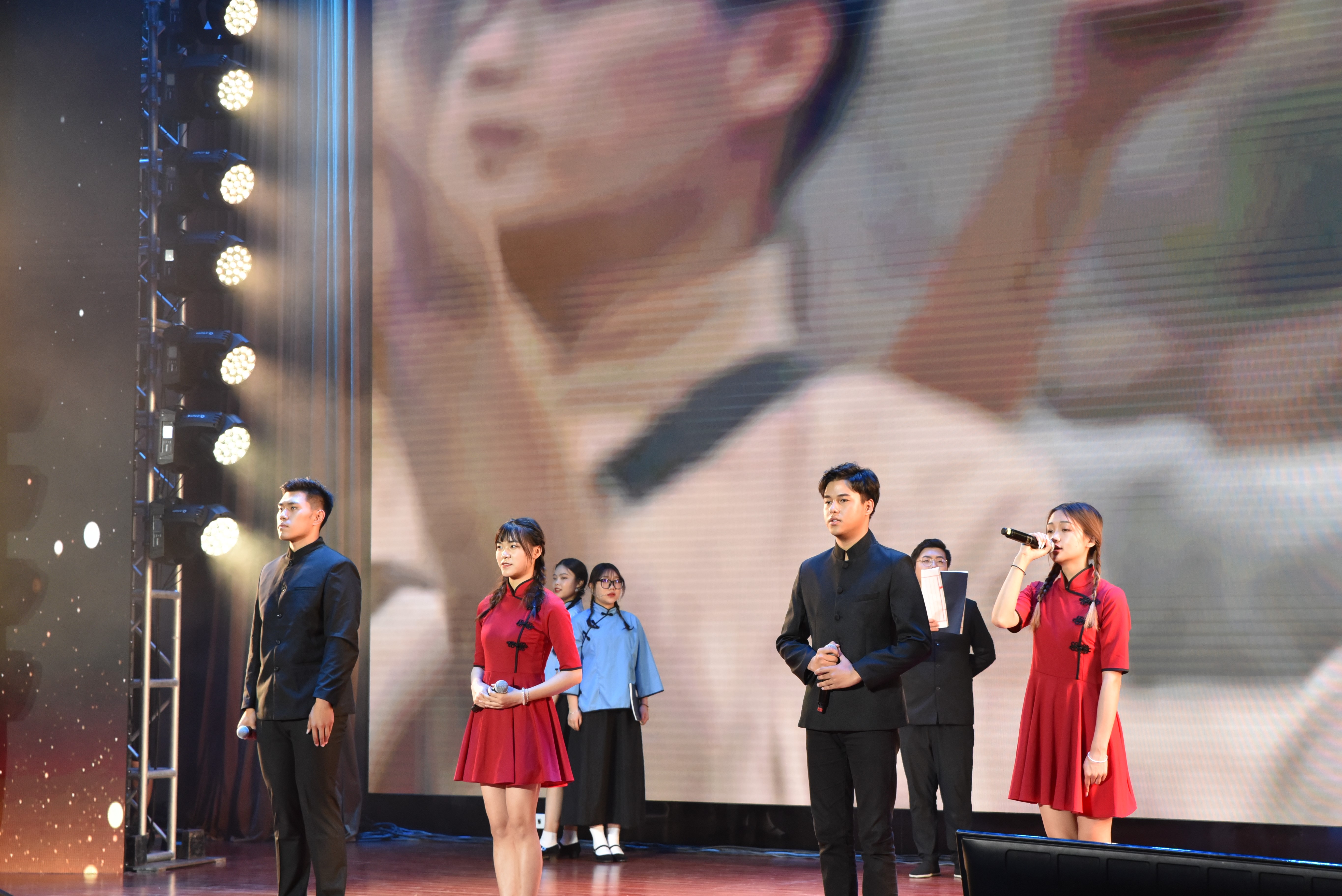 “没有共产党就没有新中国。”在清脆嘹亮的童声中,本次活动拉开了序幕,参与表演的师生和现场观众挥舞着党旗共同合唱《没有共产党就没有新中国》,表达了对建党百年的深深祝福;外国语学院《青春》通过激情的演讲和优美的歌声唱出“青春之国家,青春之民族”的号召;计算机学院《谋中国民族之解放》展示了中国最早的马克思主义者和共产主义者,中国共产党的主要创始人之一李大钊先生被捕后,面对反动军阀迫害从容不迫、大义凛然的英雄气概;商学院《活出自己的青春》,讲述了我国最早期共产党员之一的夏明翰同志,在国家危亡之际义无反顾地投身革命,英勇就义;经济学院《革命伉俪的诀别信》让在场师生感受到了革命伉俪陈觉和赵云霄同志的革命爱情。