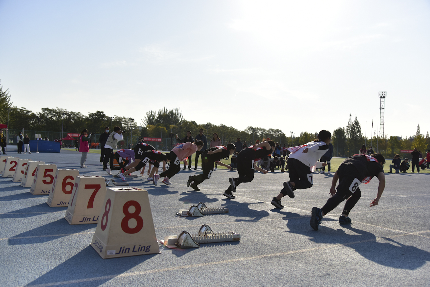 据统计,今年共有1490人次参加了本次运动会田径项目的激烈角逐,658名学生在趣味项目中比拼;裁判员、志愿者、学生记者等285人,安保、后勤保障人员80人,他们在各自的岗位上默默奉献、积极投入,为运动会的顺利进行保驾护航,成为了赛场上一道靓丽的风景线;1700余名师生到场为参赛选手们呐喊助威,与选手们一同感受运动的激情、青春的力量。