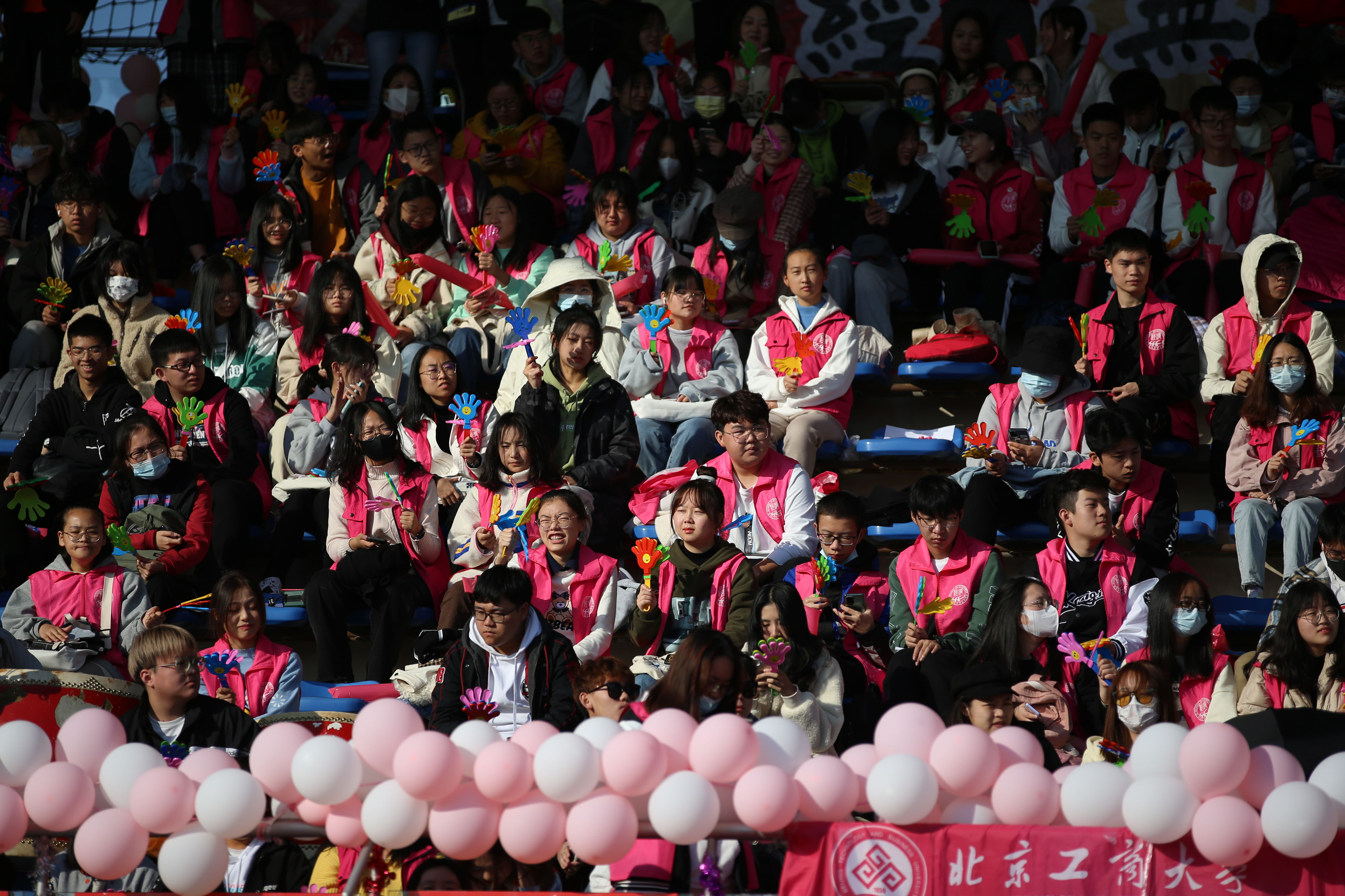 各学院各色旗帜和精心准备的横幅将柏林蓝操场装扮一新。伴随着运动员进行曲,学院方阵、国旗护卫队以饱满的热情步入运动场。整齐的方阵彰显着青春朝气;国旗护卫队步伐铿锵、英姿飒爽;运动员们热情洋溢,自信昂扬;看台上,观众井然有序,欢呼声响彻会场。体育与艺术教学部、学生处、公共事务处、保卫处、校团委、党委宣传部等相关部门工作人员也已就位,为比赛的顺利进行保驾护航。