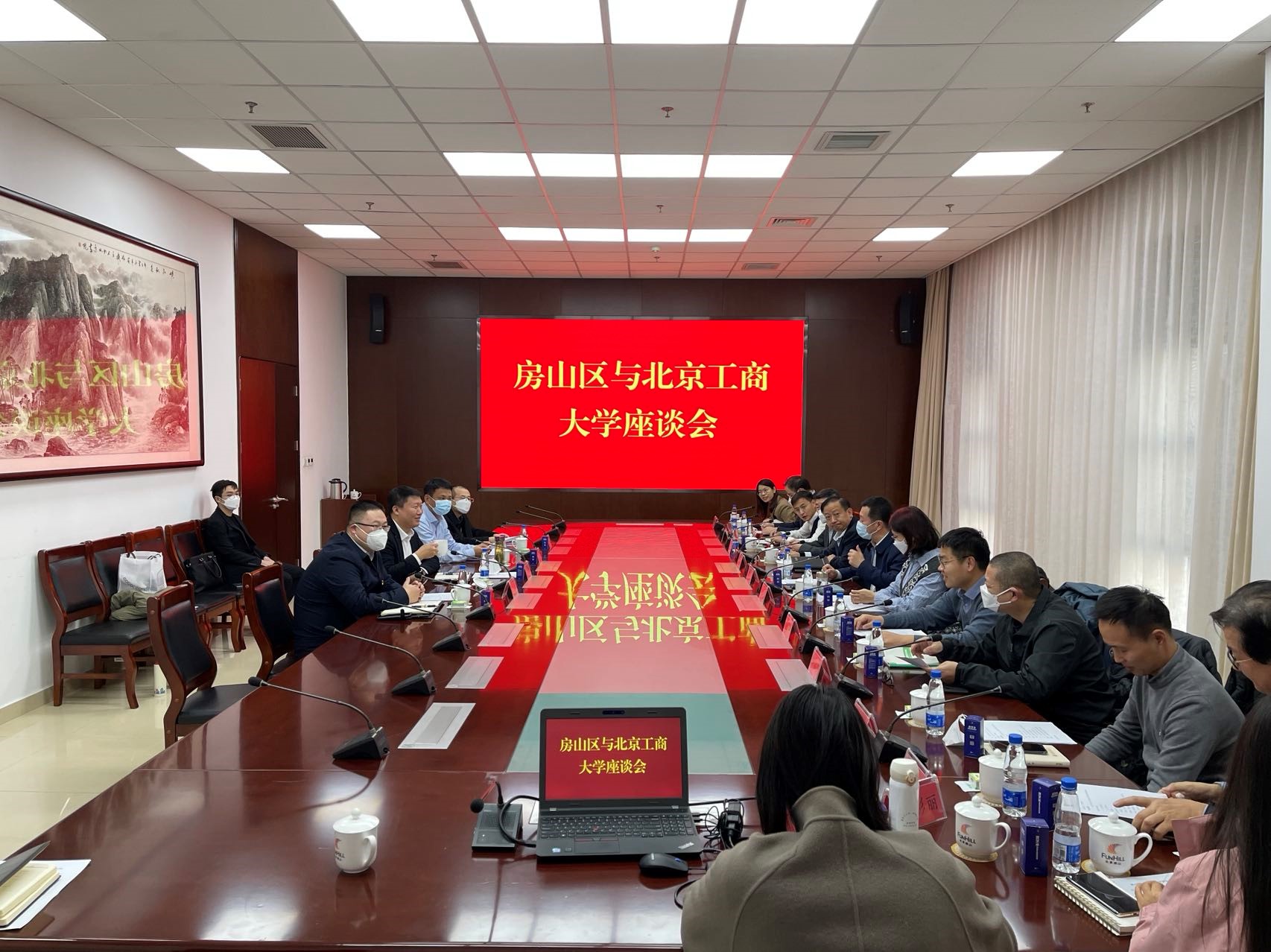 尹航代表房山区欢迎刘敏华、王海平一行。在观看房山区《云瞰房山》宣传片后,尹航简要介绍了房山区的区域资源优势、经济社会发展情况及未来发展构想,希望通过此次座谈会,持续深化与北京工商大学的属地合作,为国家乡村振兴建设,房山区农业农村发展出谋划策,舔砖加瓦。