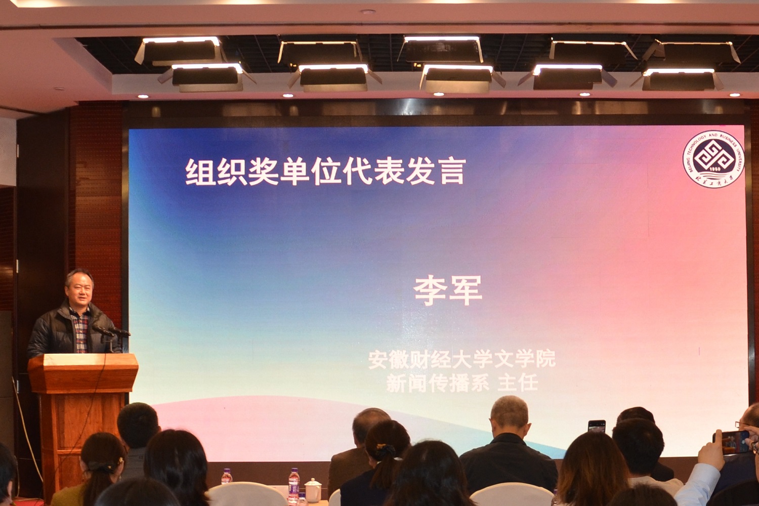“第九届大学生经济新闻作品大赛”颁奖会同期举行。此次大赛共收到全国36所高校的285件作品,经过严格公正的评选,来自全国21所高校的30篇作品获奖,其中新闻报道类获奖作品27件、评论类获奖作品3件。我校语言与传播学院许莉副教授主持颁奖仪式。我校及南京大学、中山大学、兰州大学、安徽师范大学、广西财经学院、湖北经济学院、重庆外语外事学院、重庆人文科技学院等16所高校获得了大赛优秀组织奖。中南财经政法大学新闻与文化传播学院潘紫青同学、安徽财经大学文学院新闻传播系主任李军老师分别作为获奖学生代表、组织奖单位代表发言。