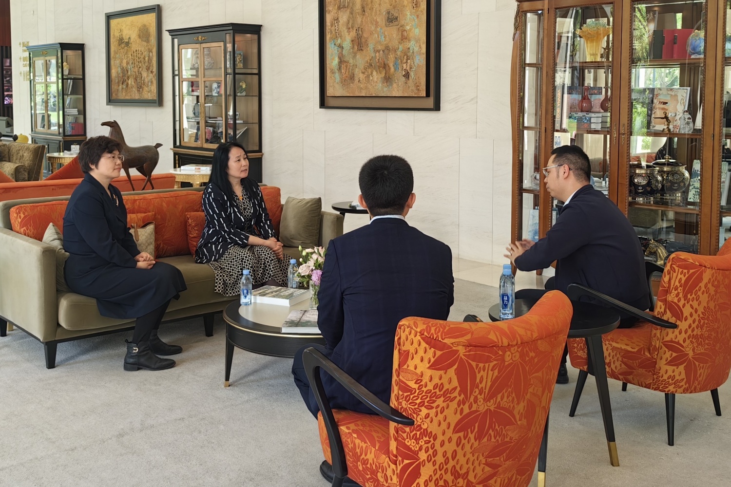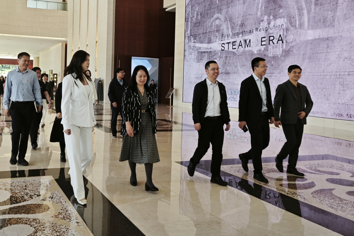 座谈会前,宋晓欣一行参观了华为北京会展中心,了解了华为科技创新成果在国家发展、城市建设和个人生活等领域的前沿贡献和广泛应用。