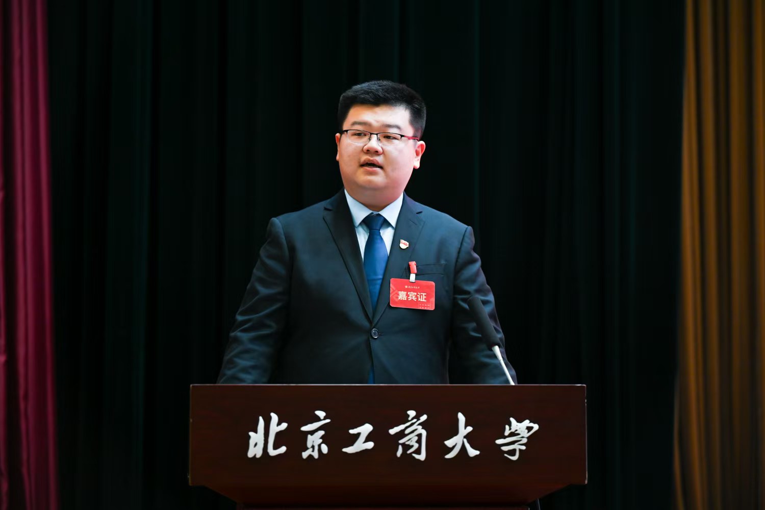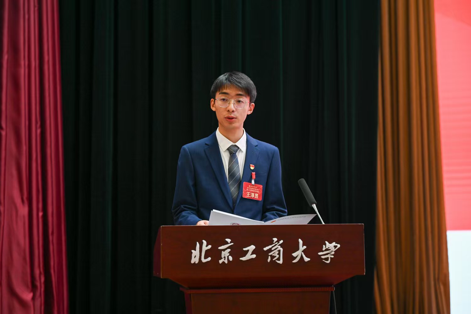 王淳昱代表兄弟院校向大会召开表示祝贺,他表示北京工商大学学生会、研究生会始终紧紧围绕学校中心工作,发挥桥梁纽带作用,传承红色基因、深耕校园文化、推动美育浸润、维护学生权益、深化组织改革,积极服务首都经济社会发展,展现了清新阳光的组织形象。希望北京工商大学学生会组织能够与各兄弟高校学生会组织继续加强交流合作,凝聚广大青年学子的奋斗共识,用实际行动共同书写新时代学生组织的青春答卷。