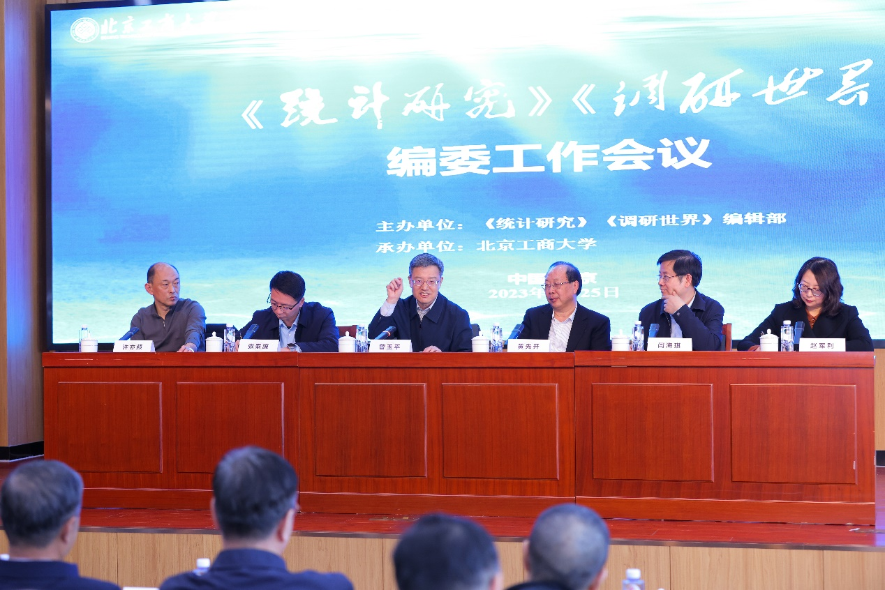 2月25日,由《统计研究》《调研世界》编辑部主办、北京工商大学承办的《统计研究》《调研世界》编委工作会议在我校阜成路校区召开。学校党委书记黄先开,国家统计局总统计师、中国统计学会常务副会长曾玉平致辞。全国哲学社会科学工作办公室组织协调处处长张泰源,《统计研究》主编、《调研世界》总编辑闾海琪,《调研世界》常务副总编辑许亦频,《统计研究》常务副主编赵军利和来自北京大学、中国人民大学、浙江大学、中山大学、北京师范大学、上海财经大学、中央财经大学、对外经济贸易大学、东北财经大学、中南财经政法大学、东北师范大学、江西财经大学、天津财经大学、广州大学、浙江财经大学、浙江工商大学、上海对外经贸大学等20余所高校的40余位统计学及相关学科专家学者(编委)出席本次会议。