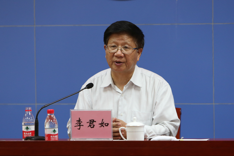 讲座前,李君如简要总结了我校经济学院第一学生党支部为归侨老人开展的志愿服务活动,并对学校、经济学院和学生志愿者表示感谢。