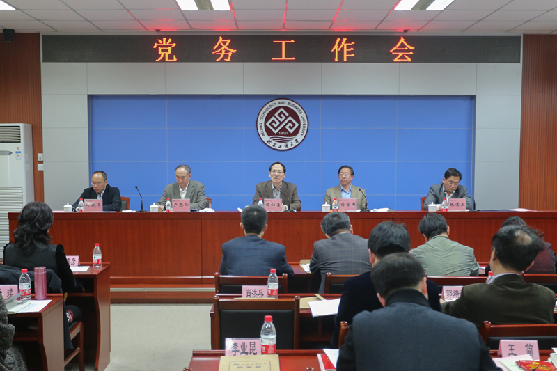 党委副书记张德玉对2015学校党务工作的重点内容进行部署并提出要求:第一,加强理论学习,提高学习效果。各党总支要根据学校要求,认真制订好学习计划,组织好二级理论学习中心和党支部学习工作,各支部要建立学习制度,创新学习形式,结合工作开展研讨;要统筹开展、各负其责做好学校培训工作,结合要求做好中层干部、党员等各层级培训;要积极开展学生党员先锋工程,配齐理论学习导师,发挥学生党员先锋模范作用,开展学生党员评优。第二,抓基层打基础工作方面,要建立三级抓党建责任制,强化责任;抓好教师党支部建设,开展高质量组织生活;严格程序,做好党员发展工作。第三,宣传思想工作和意识形态工作方面,宣传工作要围绕讲好工商故事,大力弘扬身边典型;要充分发挥网络新媒体作用,积极推进校园网改版,加强英文网站建设,加强新媒体平台的管理;要强化意识形态阵地管理,落实中央59号文件精神,落实责任,明确要求,齐抓共管。