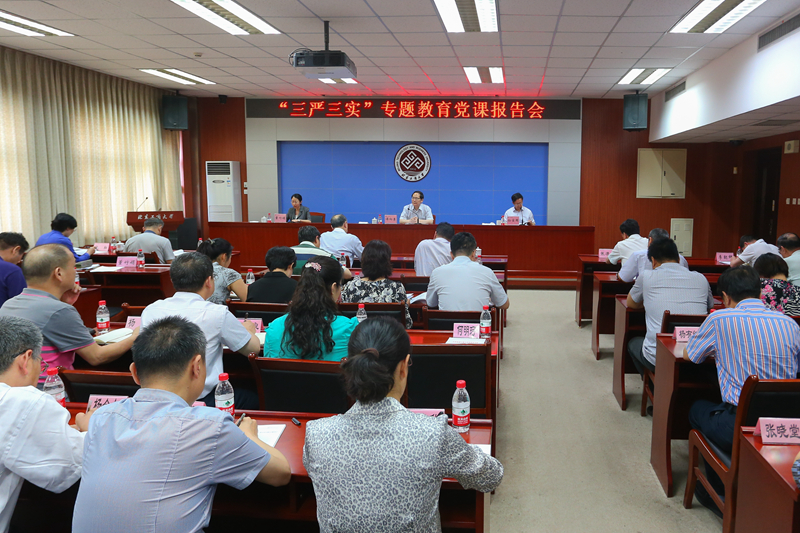 谭向勇以《深入学习践行“三严三实”,加快推进学校转型发展》为题,从工作主线、奋斗目标、战略布局、执政基础、核心保障这一逻辑框架,选取习近平总书记治国理政、从严治党的五个关键词,即中国特色社会主义、中国梦、“四个全面”、群众路线和“三严三实”进行了详细解读,重点阐述了“三严三实”重要论述的重大意义。他强调,“三严三实”言简意赅、内涵丰富,是对中华优秀传统文化的传承和创新,贯穿了马克思主义政党建设的基本原则和内在要求,体现了共产党人的价值追求和政治品格,为从严管党治党注入了新的时代内涵,为转作风改作风确立了鲜明导向。他详细分析了“三严三实”的丰富内涵及逻辑关系,他认为,一方面,它是世界观和方法论的统一,是做人做官做事的统一,是内在自律和外在约束的统一;另一方面,“三严三实”体现了价值评价的社会标准和个体标准的统一、历史标准和道德标准的统一、动机和效果的统一、真理与价值的统一。