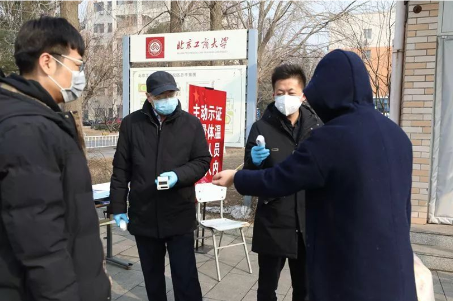 “站好这班岗,护好一校人。”2月11日7:50,迎着朝阳,北京工商大学学校办公室、党委组织部(统战部)的党员中层干部和工作人员在学校阜成路校区的西区南门、东区南门开始了工作,出入登记、检查证件、测量体温……有序开展疫情防控工作。