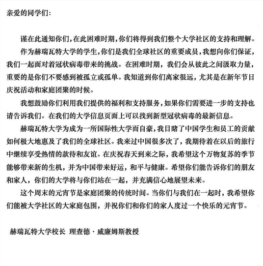 英国赫瑞瓦特大学校长Richard A. Williams和校长助理Ms. Ruth Moir发来问候: