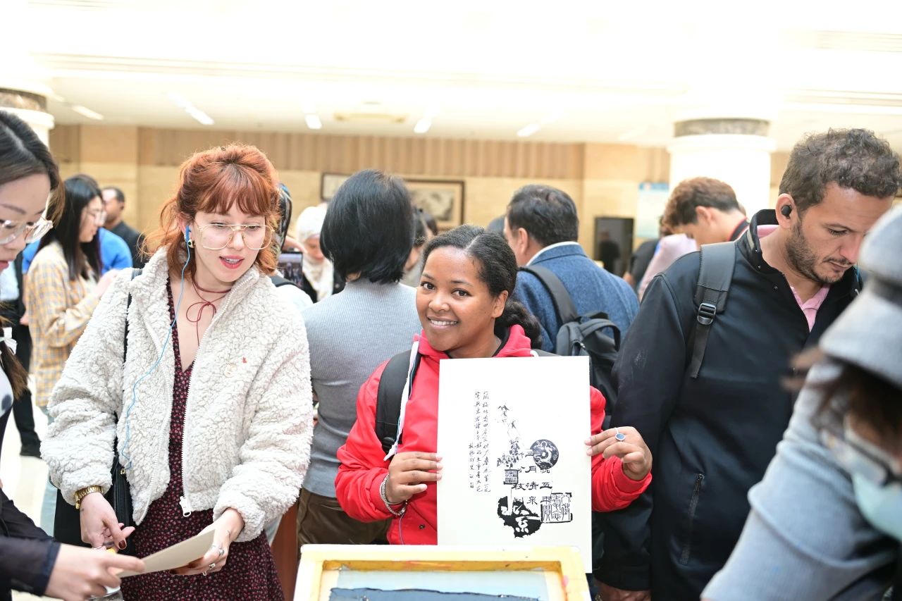 外国记者们走进北京工商大学,详细了解学校的办学历史和发展成就。在学校数字未来中心和智能教室,身临其境感受信息时代首都高校的教育服务管理新模式,以及“互联互通、资源共享”的智能育人环境。学校图书馆大厅“丝网印刷”文化体验活动,更是引起了记者们的浓厚兴趣。