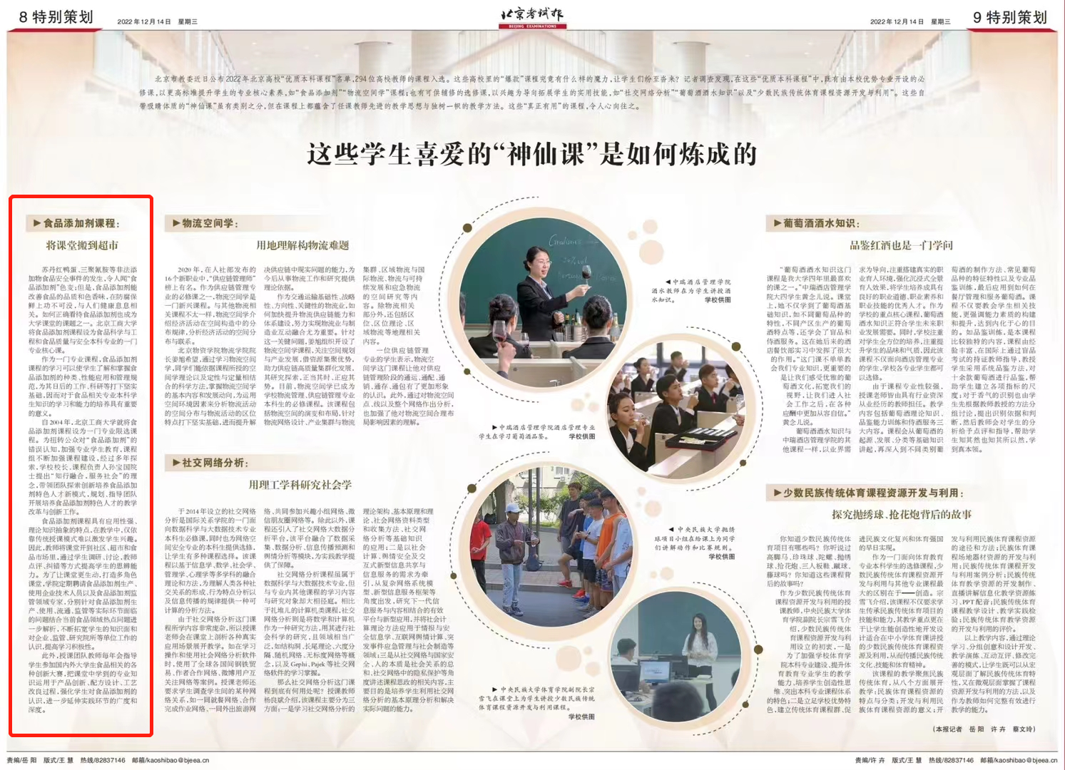 近日,北京考试报报道了我校食品科学与工程和食品质量与安全本科专业新增的“食品添加剂课程”,现转载如下: