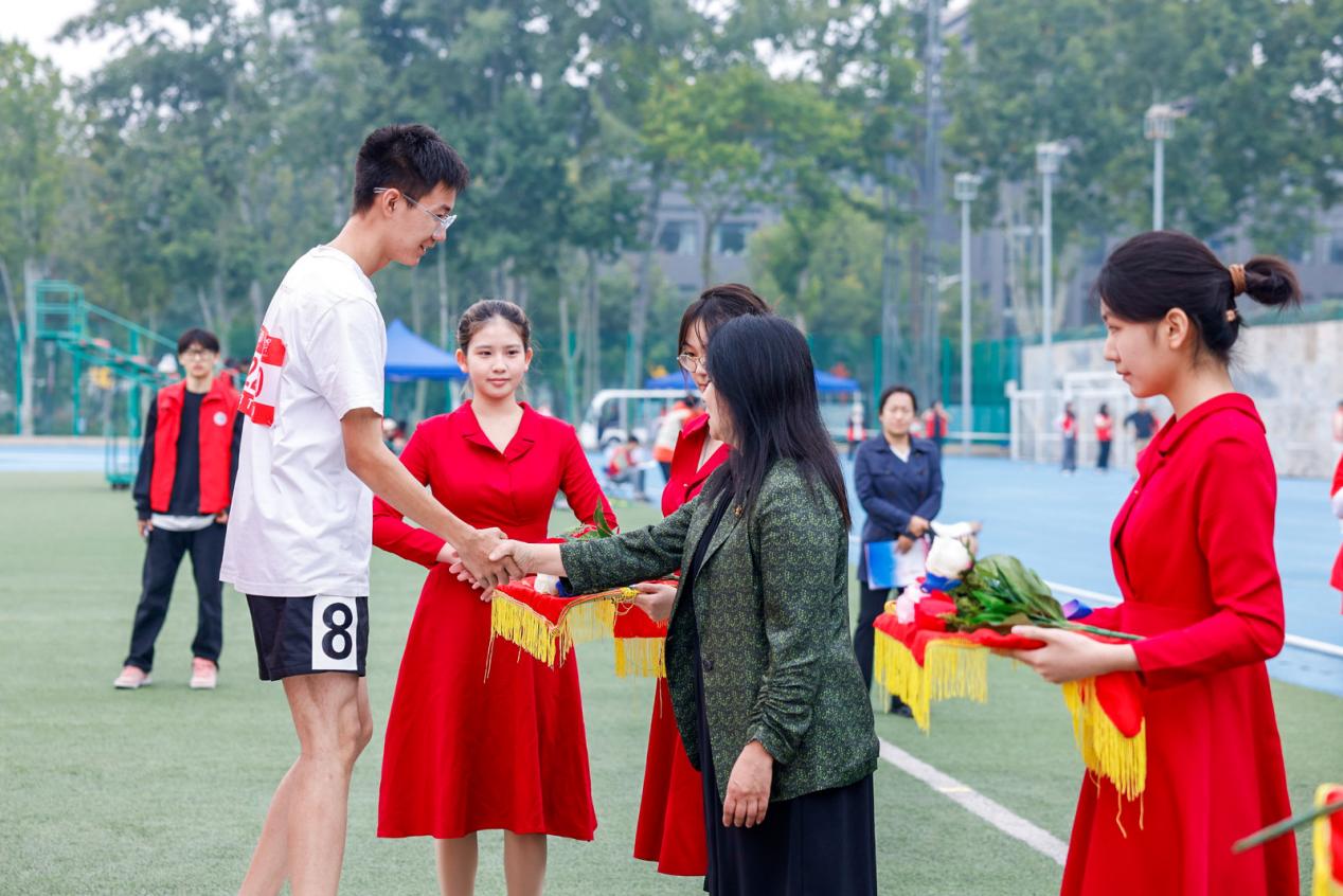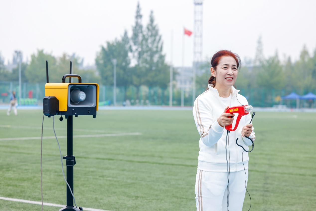 学校党委常委、副校长徐丹丹宣布运动会开幕并为女子100米决赛鸣枪。