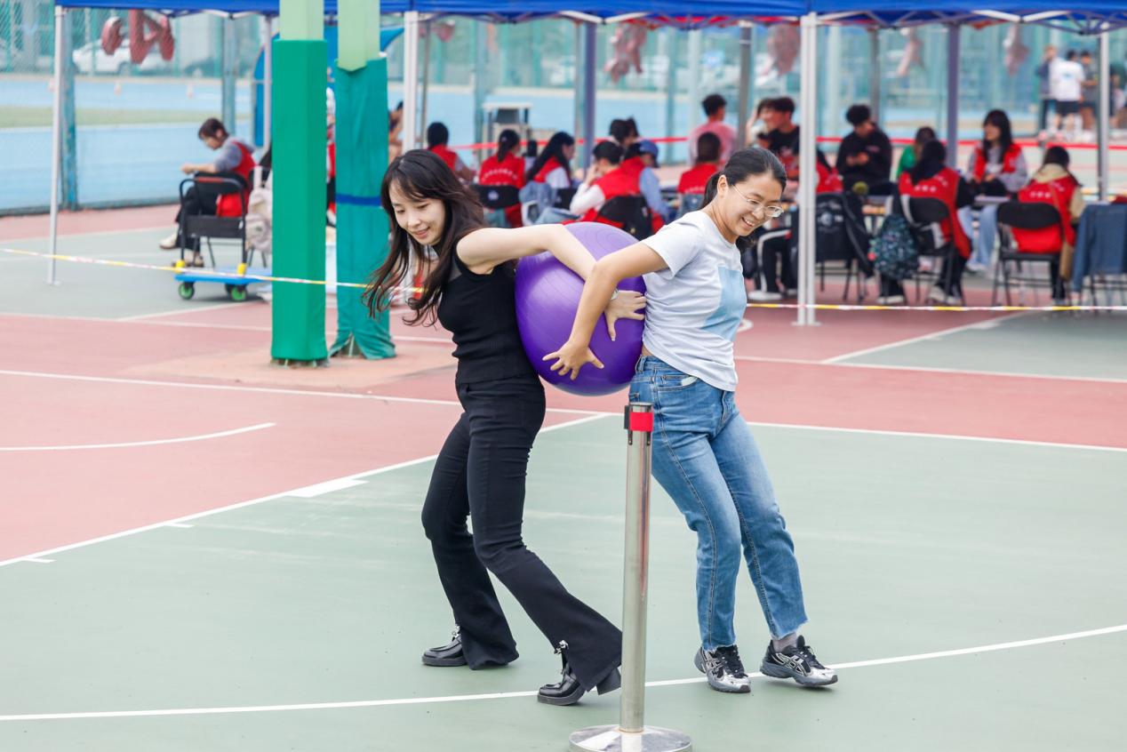 在趣味运动中,各学院运动员奋进拼搏、挥洒汗水,凝聚团队协作力量,绘制团结友爱的温暖画卷。