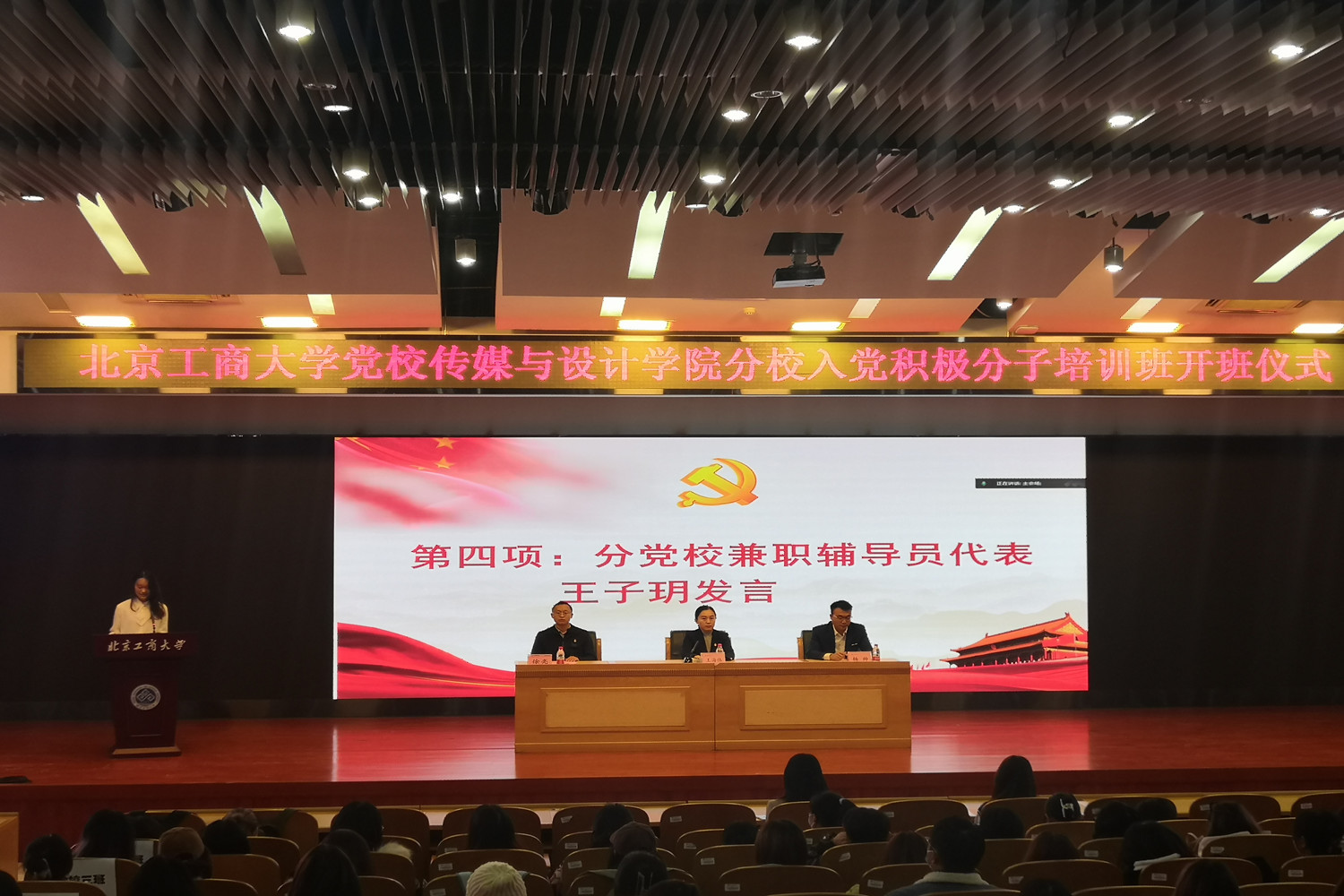 11月5日,传媒与设计学院分党校第十六期入党积极分子培训班开班仪式在良乡主校区举行。学院党委书记、分党校校长王海伟,党委副书记、分党校副校长杨帅参加开班仪式。党校学生兼职辅导员、培训班学员共计200余人参加开班仪式,会议由学院专职组织员徐亮主持。