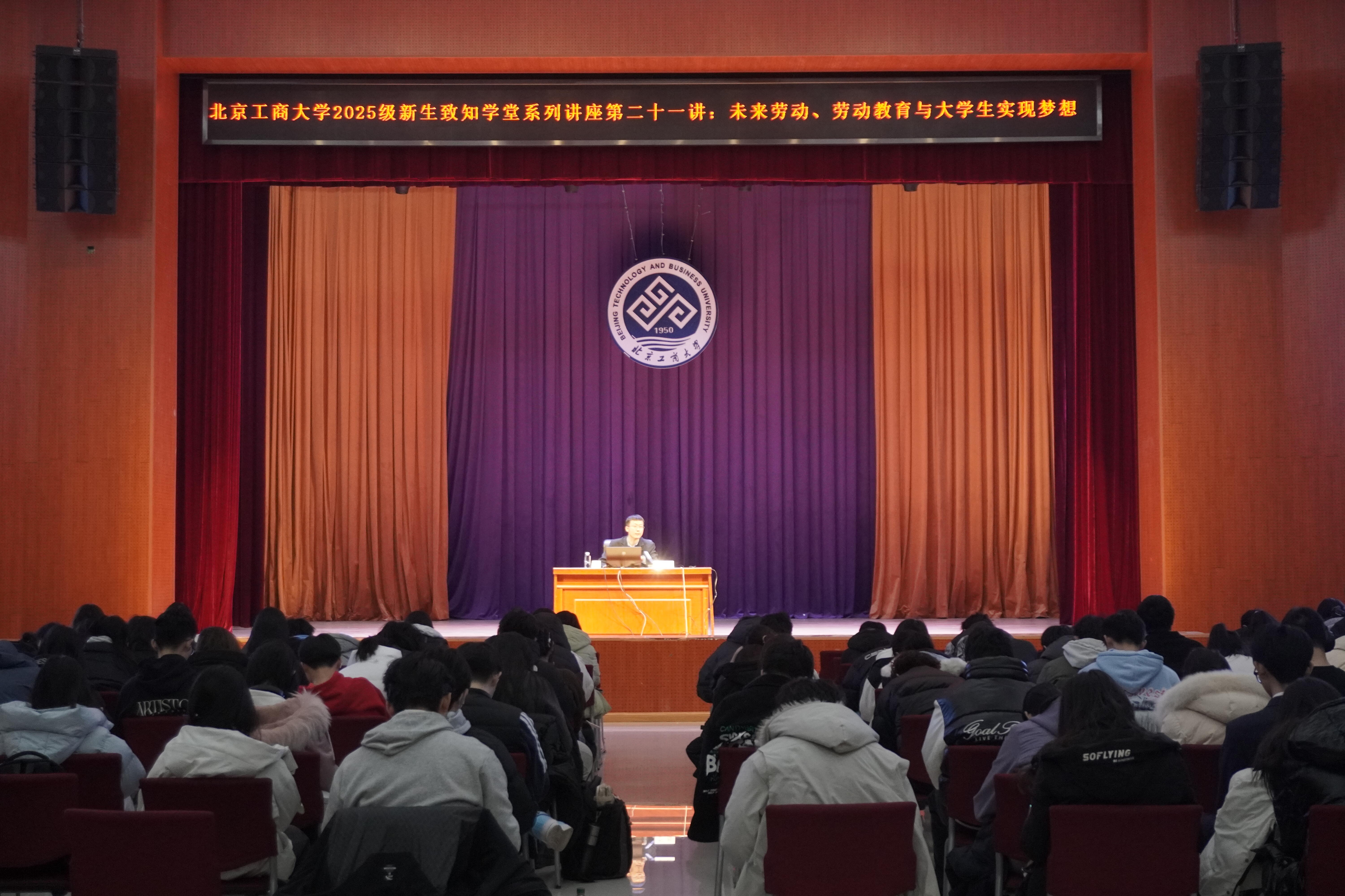 12月25日,学校在阜成路校区举行2025年“致知学堂”系列讲座第二十一讲。中国劳动关系学院劳动教育学院副院长党印副教授以“未来劳动、劳动教育与大学生实现梦想”为题,为全校师生带来了一场兼具思想深度与时代温度的精彩讲座。讲座围绕人工智能时代劳动形态的变革、劳动教育的核心价值,以及大学生如何应对未来挑战等议题展开深入探讨。