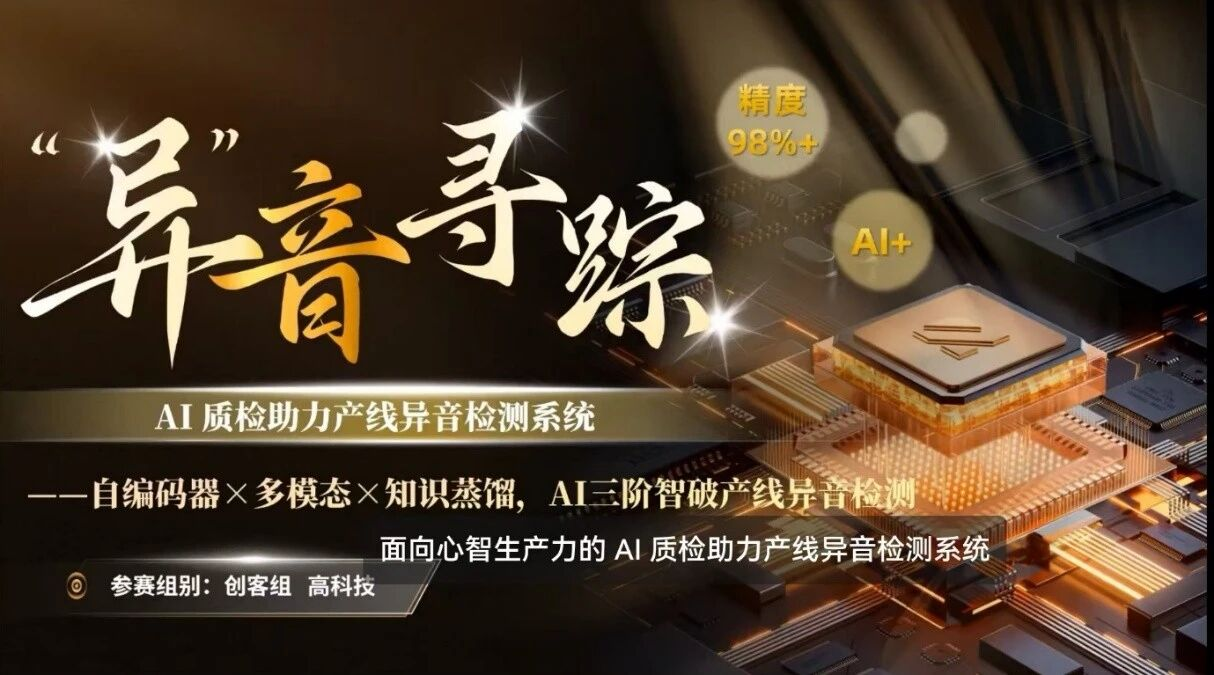 项目简介:异音寻踪项目推出AI质检系统,解决制造业因产品异音故障导致的损失问题(每年损失超千亿元)。系统采用自编码器与多任务网络,具备毫秒级检测效率。
