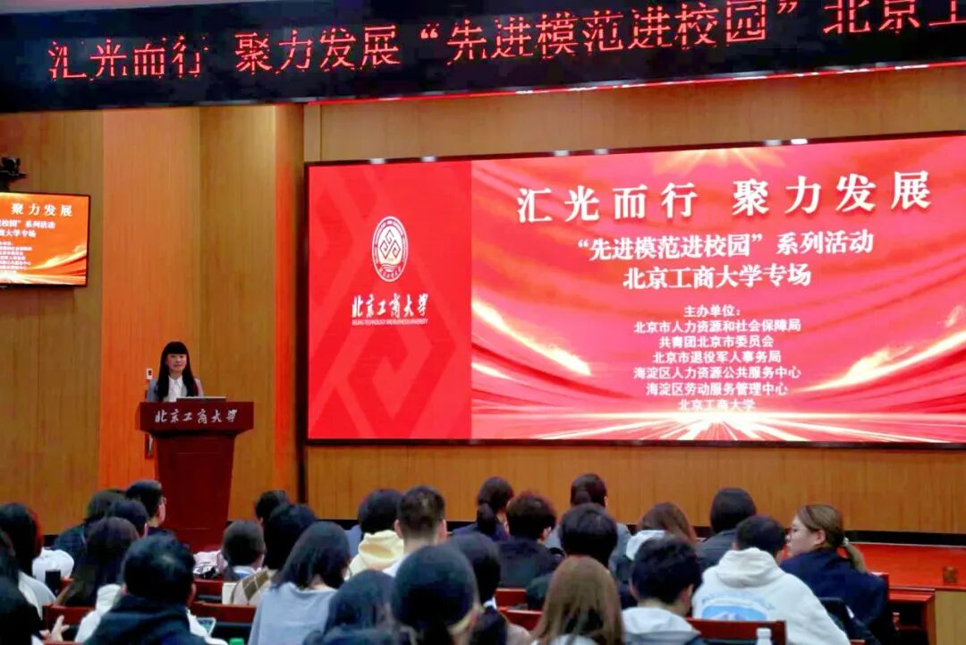 北京市人力资源和社会保障局表彰任免处处长马佳艳、副处长张睿,团市委组织部副部长贾薇、大学部副部长王若冰,北京市退役军人事务局思想政治和权益维护处副处长夏纪伟,海淀区人力资源公共服务中心和劳动服务管理中心相关负责人,北京工商大学学生处副处长曹璐婷,招生就业处副处长刘晶出席本次报告会,报告会由校团委书记单紫薇主持。