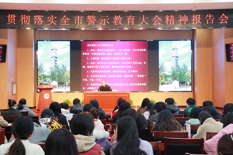 殷庆言教授从职务腐败和学术腐败的共性谈起,从三个方面剖析了2020年全市警示教育大会的主要精神。一是十八大以来,全面从严治党取得历史性成就,反腐败斗争取得压倒性胜利,但不能低估形式的严峻性和复杂性,要时刻保持清醒头脑,全面从严治党永远在路上;二是要深挖违纪违法案例背后的问题根源,举一反三、汲取教训,及时补齐全面从严治党的短板和漏洞,做到“五个必须”;三是要把“严”的主要基调长期坚持下去,一体推进不敢腐、不能腐、不想腐,推动全面从严治党不断取得新成效。