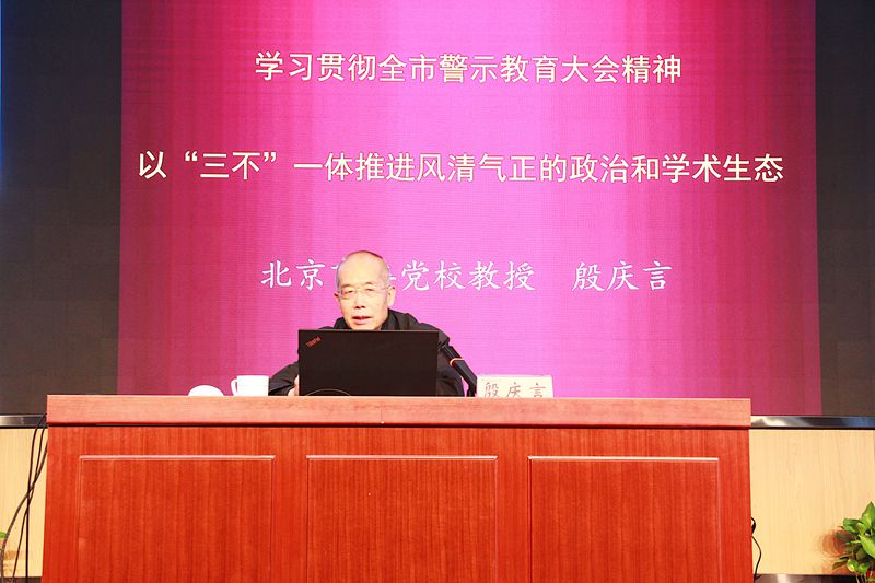 为提升研究生党员发展对象和研究生院党支部的党性修养和廉洁自律意识,11月19日下午,原中共北京市委党校副校长殷庆言教授在我校作了题为《以“三不”一体推进风清气正的政治和学术生态》的报告会,全面解读了11月13日召开的全市警示教育大会精神。研究生院副院长赵峙尧和全体研究生院工作人员及126名研究生党员发展对象参加了会议。报告会由研究生院副院长兼研工部副部长郭新愿主持。
