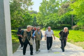 86岁的孟祥玉老师作为活动中资历最深的老同志之一,精神矍铄,全程参与,每到一处景观都兴致勃勃,用亲身实践细细感悟着景观所蕴含的厚重历史,汲取更多启迪带来的青春活力,成为活动独特的一道风景。