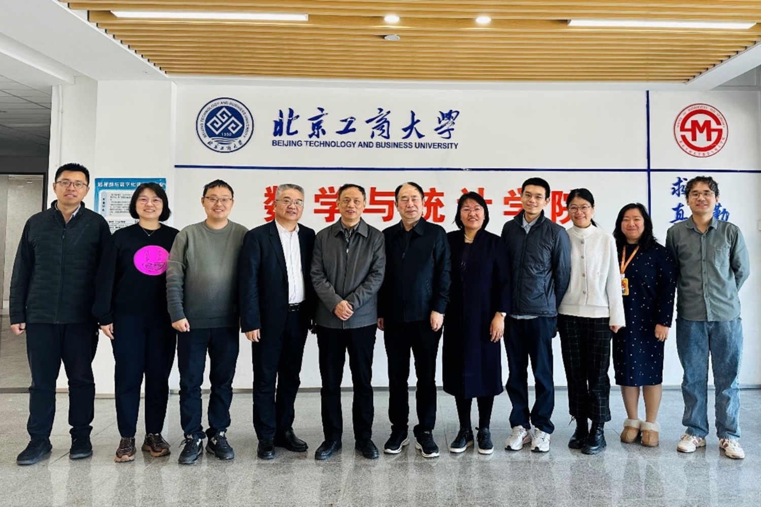 1 月 10 日,广州大学原党委书记、校长庾建设教授、长沙学院原校长黄立宏教授应邀莅临北京工商大学数学与统计学院指导工作,为数学学科建设及未来发展把脉问诊、建言献策。会前,学校党委副书记、校长郭建华教授,副校长刘艳楠教授分别会见了两位专家。咨询会由学院党委书记周艳杰教授主持,学院执行院长曹显兵教授、副院长黄雪源、王健、王康以及各系系主任共同参加了此次咨询会。