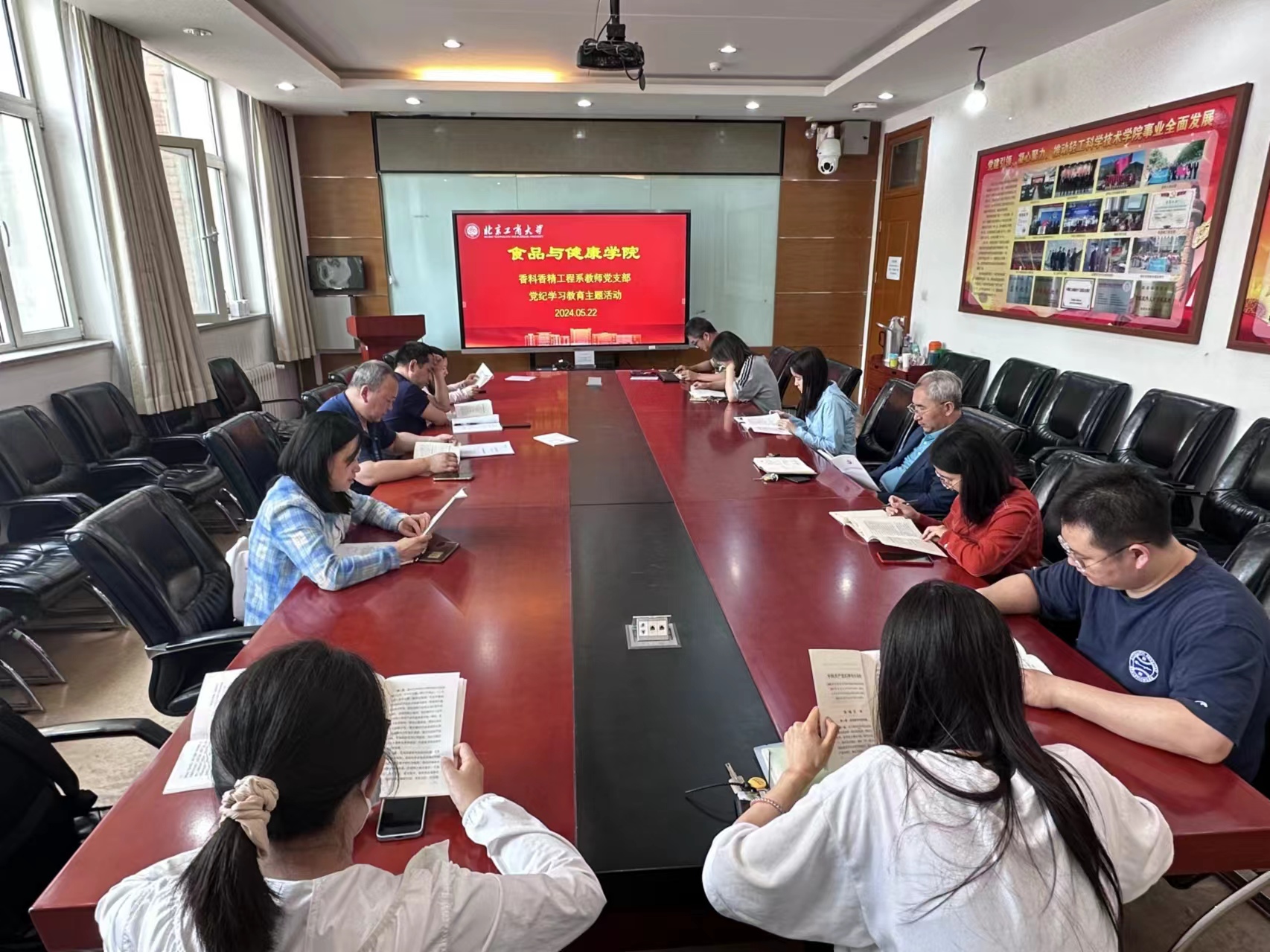 为进一步深化党员教师党纪意识,增强学纪、知纪、明纪、守纪的底线思维,5月22日,食品与健康学院香料香精工程系教师党支部开展党纪学习教育主题活动,集中时间原原本本学习《中国共产党纪律处分条例》。此次活动旨在通过深入学习《条例》,使党员教师充分认识到严明党的纪律的重要性,自觉做到守纪律、讲规矩,提升党支部的凝聚力和战斗力。