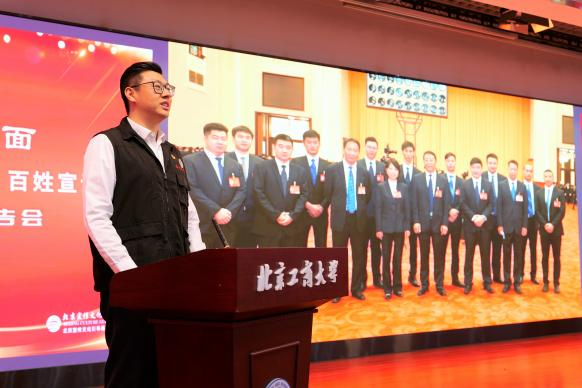 为深入学习贯彻习近平文化思想,贯彻落实习近平总书记关于时代新人培育、文化强国建设重要指示精神,推动首都高校人才培养和全国文化中心建设双向互动、相互赋能,4月2日,先进人物面对面——“学习贯彻习近平文化思想”百姓宣讲北京工商大学专场报告会在我校举行。来自不同行业领域的6位百姓宣讲员结合亲身经历,讲述了自己在文化传承与创新中的感人故事,生动展现了习近平文化思想在京华大地的实践伟力。2025年度青马班暨中级团校“优干工程”培训班学员、各学院学生代表共计300余人现场聆听了报告会。