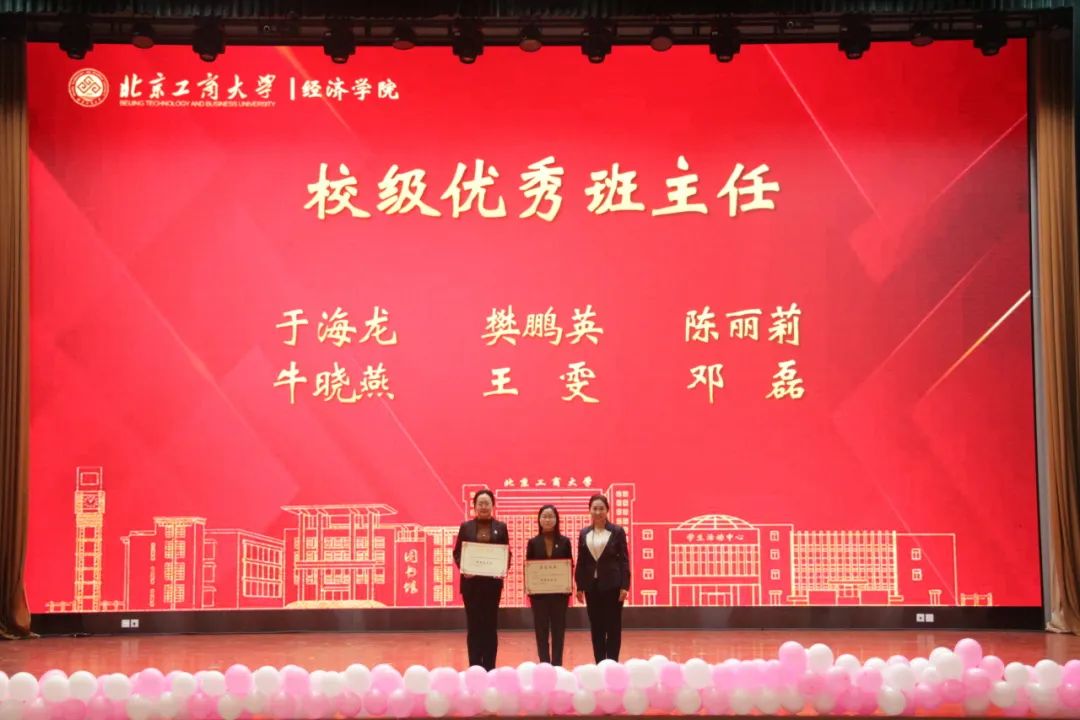 副院长马雪娇宣读教师表彰决定。2023-2024学年,学院6名教师荣获北京工商大学就业工作先进个人、13名教师荣获经济学院优秀班主任、6名教师荣获北京工商大学优秀班主任。希望全院教师发扬教育家精神,深刻践行“躬耕教坛,强国有我”的崇高时代使命,为学校“双一流”学科建设与高水平研究型大学建设贡献力量。