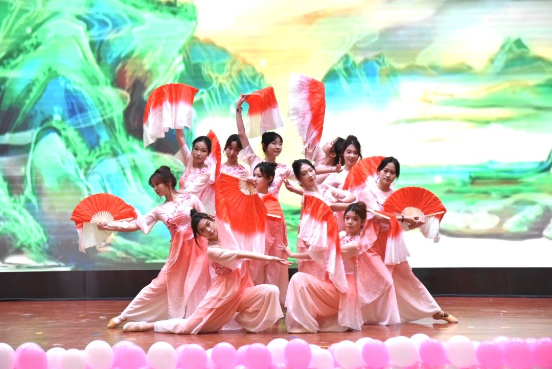 古典舞《光亮》拉开了序幕。舞者们以曼妙灵动的身姿,将国风古韵之美展现得淋漓尽致。每一个动作,都如同微尘中闪烁的光亮,汇聚成经院青年学子们熠熠生辉的光彩,为观众呈现了一场视觉上的盛宴。