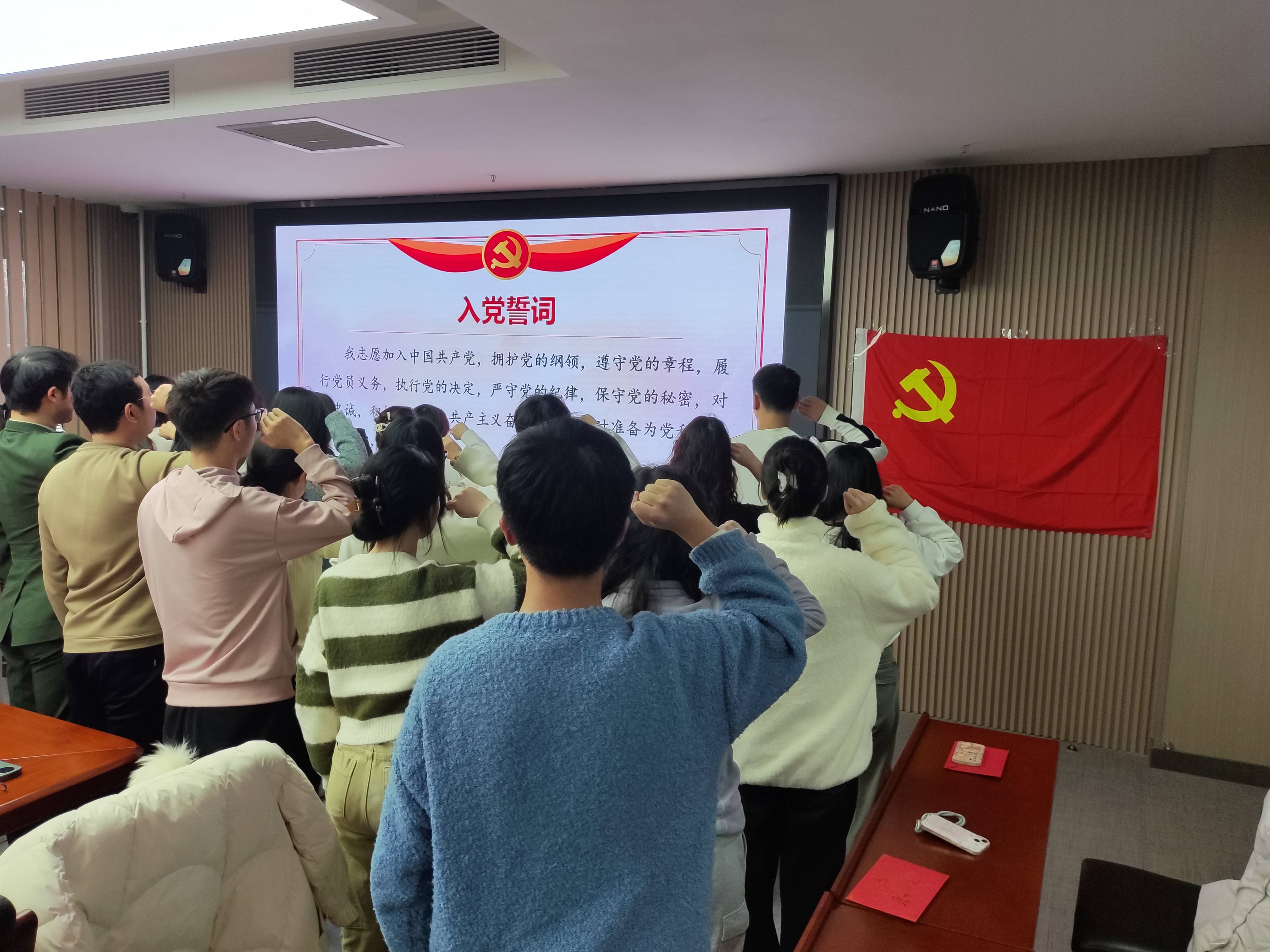 全体新党员在邹予涵的带领下,身姿挺立面对党旗,紧握的右拳高高举起,满怀崇敬的心情,用铿锵有力的声音,许下对党忠诚的庄严承诺。