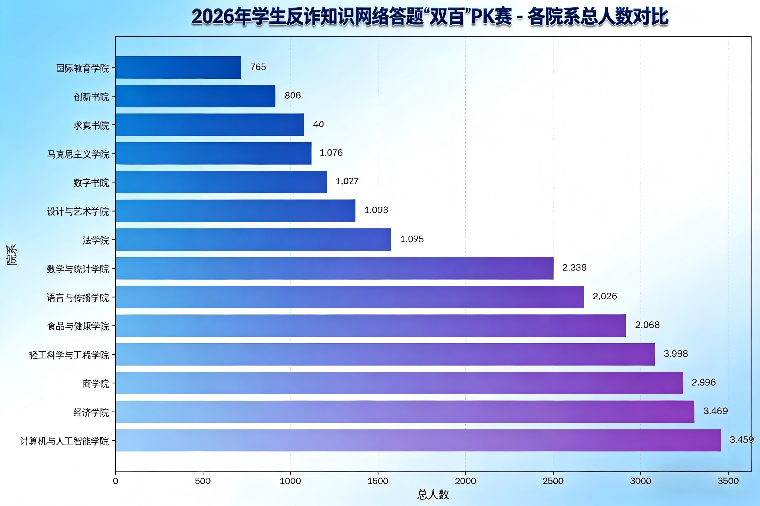 新学期伊始,为进一步提升广大在校学生防范电信网络诈骗的意识和能力,有效遏制电信网络诈骗案件发生率,守护好学生的“钱袋子”,保卫处、学生处、研究生院自3月6日起联合组织为期两周的“北京工商大学2026年学生反诈知识网络答题‘双百’PK赛”。全校近18000名在校本研学生参与,达到了以赛代“验”、以赛带“学”、以赛应“战”的活动效果,为年度电诈率、电诈金额“双降”目标打下坚实基础。