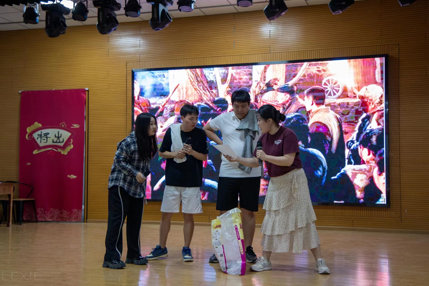 实践团学生结合当地文化背景,将传承优秀传统文化与弘扬红色革命文化紧紧联系在一起,献唱《稻香》,诗朗诵《红船,从南湖起航》,编排舞台剧《归途有风》,重新打开时间的原点,回望过去蒲洼东村发展历程。蒲洼村的乡亲们热情展示当地特色节目,老艺术家们带来山梆子戏、小调,民间艺术团带来扭秧歌,乡亲们献唱《欢聚一堂》《咱老百姓》等经典歌曲,通过朴实无华的歌词勾勒出鸟语花香、风调雨顺、情深谊长的美好景象,展望未来美好蓝图。