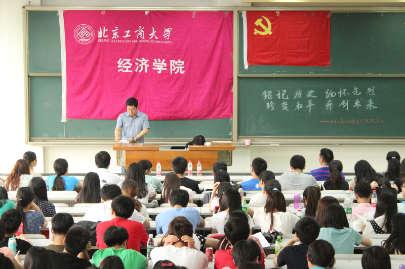 为铭记历史,弘扬爱国主义精神和民族精神,6月17日,经济学院召开了铭记历史 缅怀先烈 珍爱和平 开创未来----纪念中国人民抗日战争、世界反法西斯胜利70周年暨2014-2015年度学生党支部工作总结表彰大会。学院党总支副书记马韬光、各年级辅导员、全体学生党员与入党积极分子300余人参加了活动。