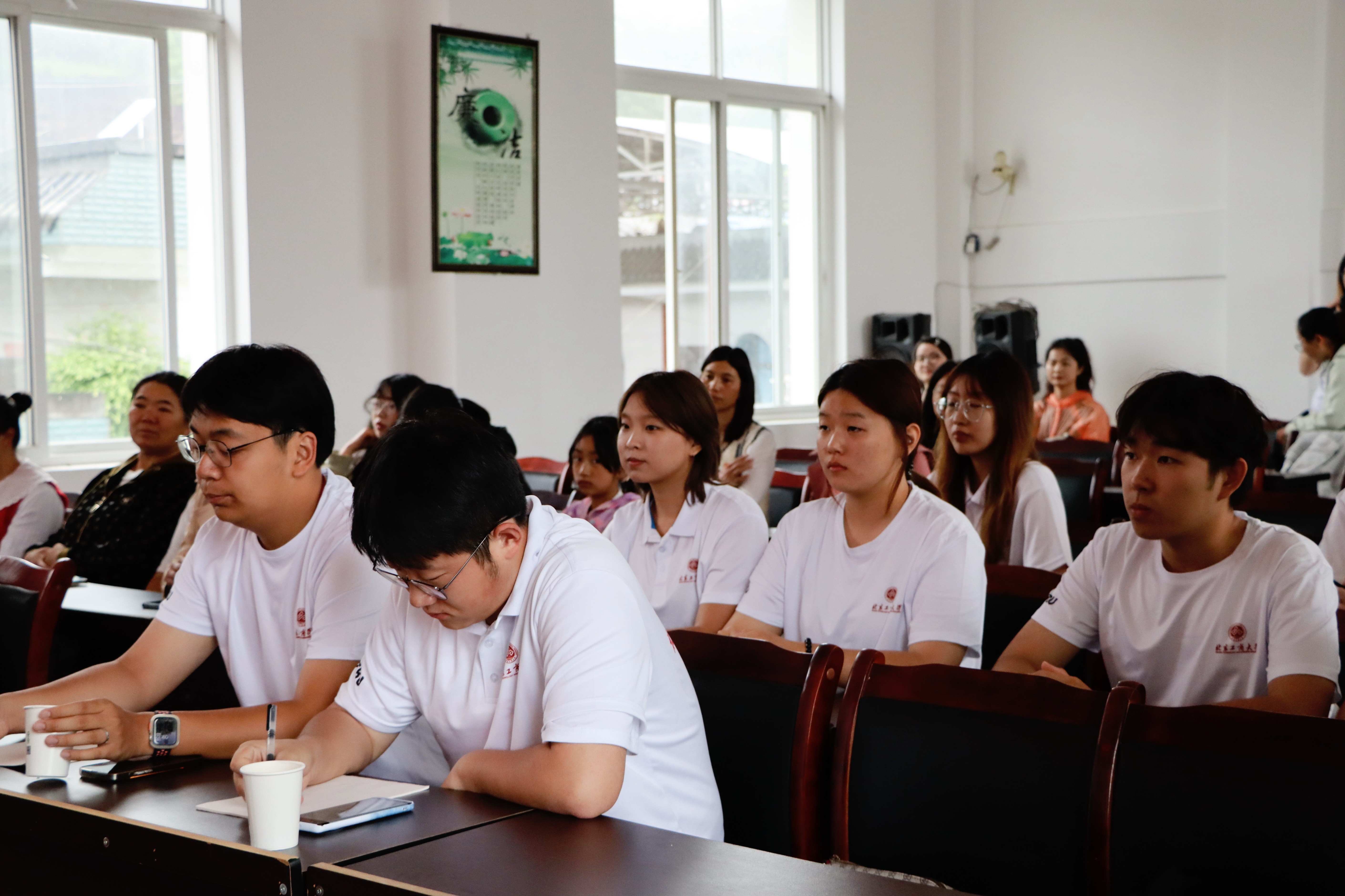“走街穿巷”看发展,“主题宣讲”促交流。实践团成员依托学校工商融合、数智赋能等学科优势,面向村民和中小学生进行了一场“助力乡村治理,关爱未成年成长”主题宣讲,围绕打云社区的乡村特色产业和旅游发展,在文旅融合、产学研用、社会实践、志愿服务等方面提出青年建议,发挥工商智慧。