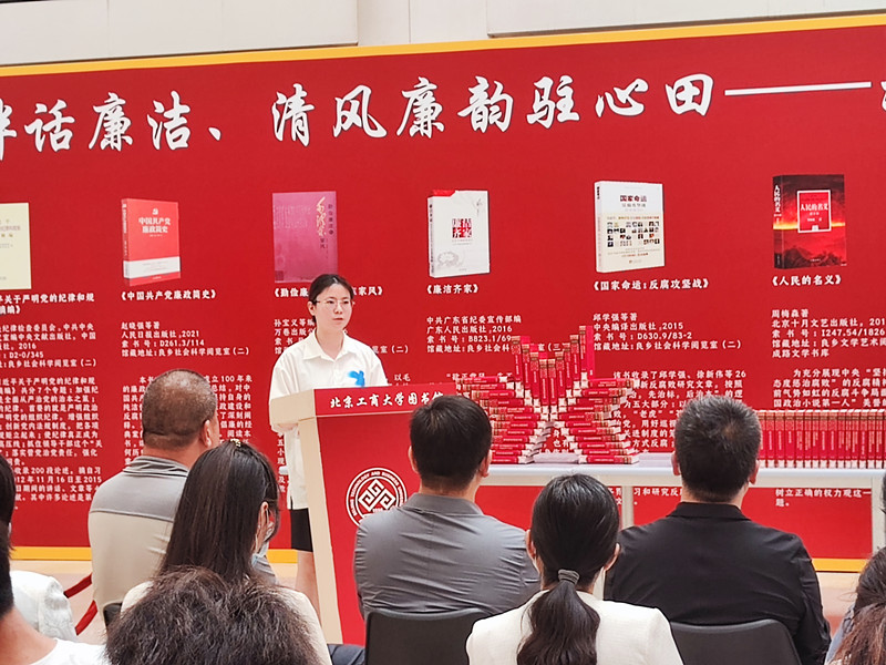 为扎实开展党风廉政宣传教育,厚植廉洁文化,涵养清风正气,作为学校“经典传承•悦读工商”第十七届读书节的精品活动之一,图书馆直属党支部自5月起在良乡馆区二层大厅面向全校师生举办“书香为伴话廉洁,清风廉韵驻心田”廉洁文化主题书展,并于5月31日召开“语话廉心”阅读分享会。