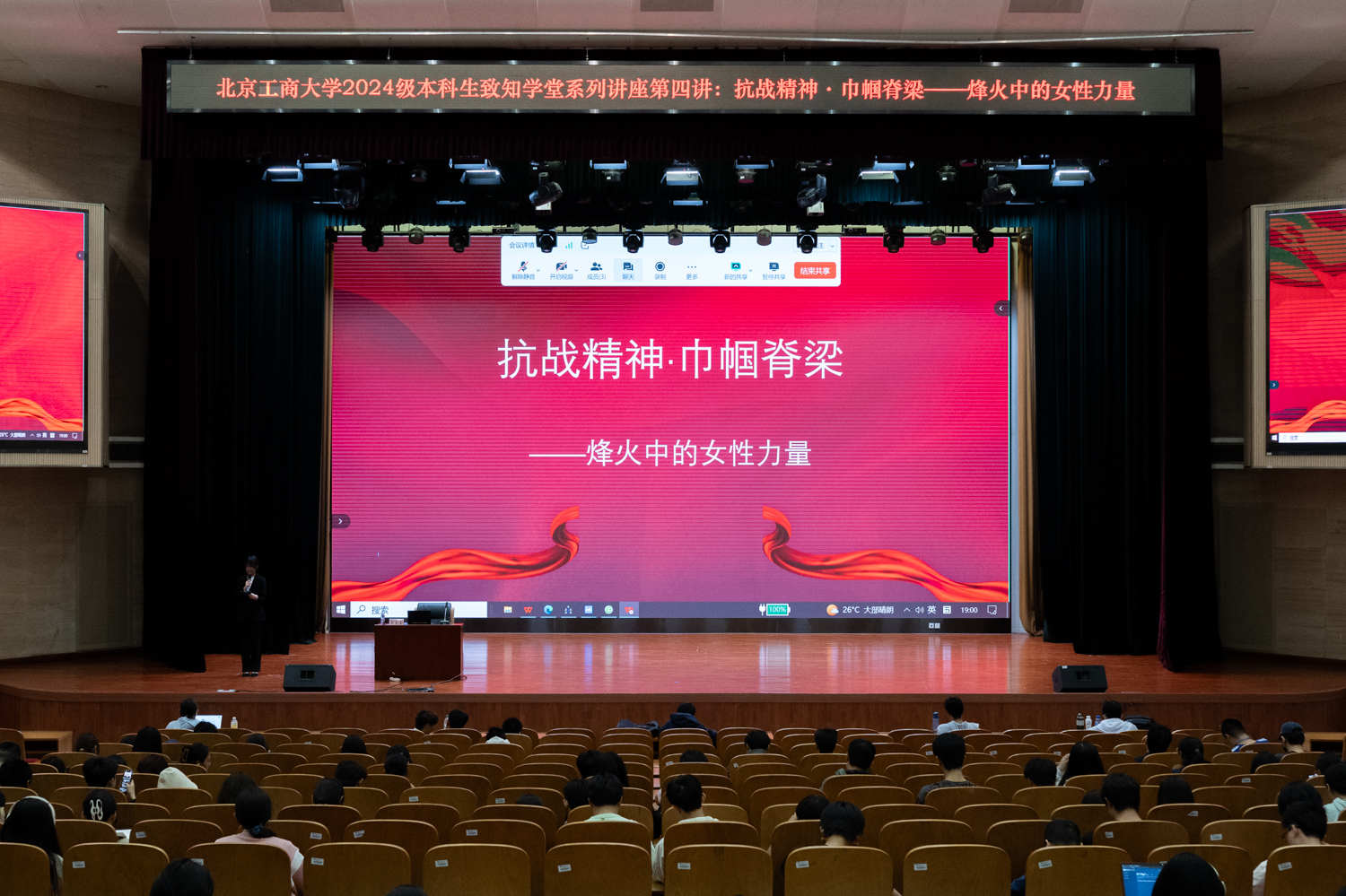 2025年4月17日,北京工商大学良乡校区A报告厅开展2025年“致知学堂”系列讲座第四讲:抗战精神·巾帼脊梁——烽火中的女性力量。中国人民抗日战争纪念馆讲解员、助理馆员王金金从抗战前线、隐秘战线、文化抗战和国际支援四个维度解析女性抗战,帮助同学们了解女性在抗战中的角色,感受跨越时空的女性力量。