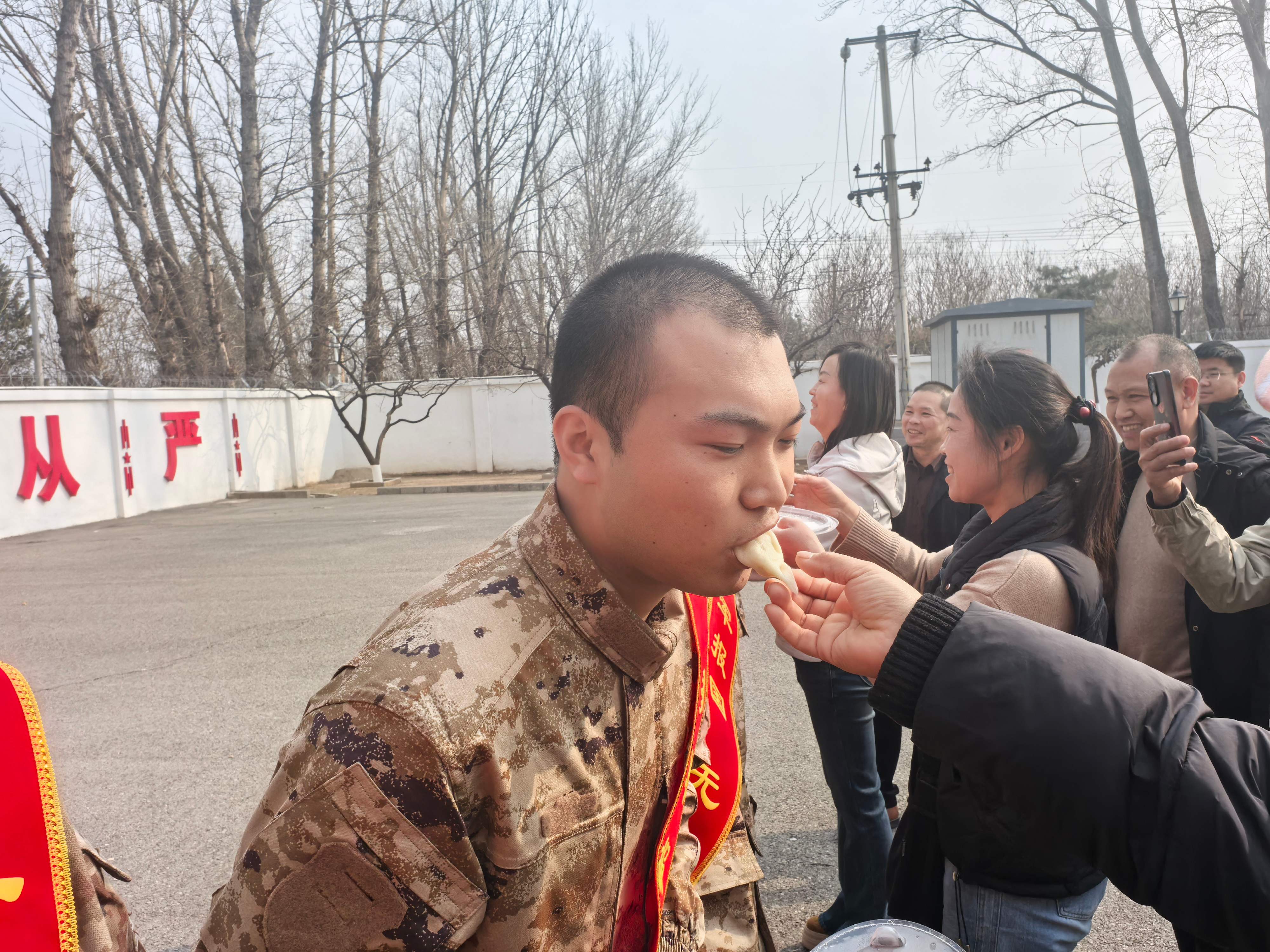 家长们的声声嘱托,满含牵挂与期许。句句叮咛,皆是不舍与厚望。家人亲手将热腾腾的饺子递到新兵手中,传递最质朴的惦念与关爱。相拥的身影、不舍的目光、坚毅的脸庞,一个个暖心瞬间,都化作新兵奔赴军营、逐梦国防最温暖的前行力量。