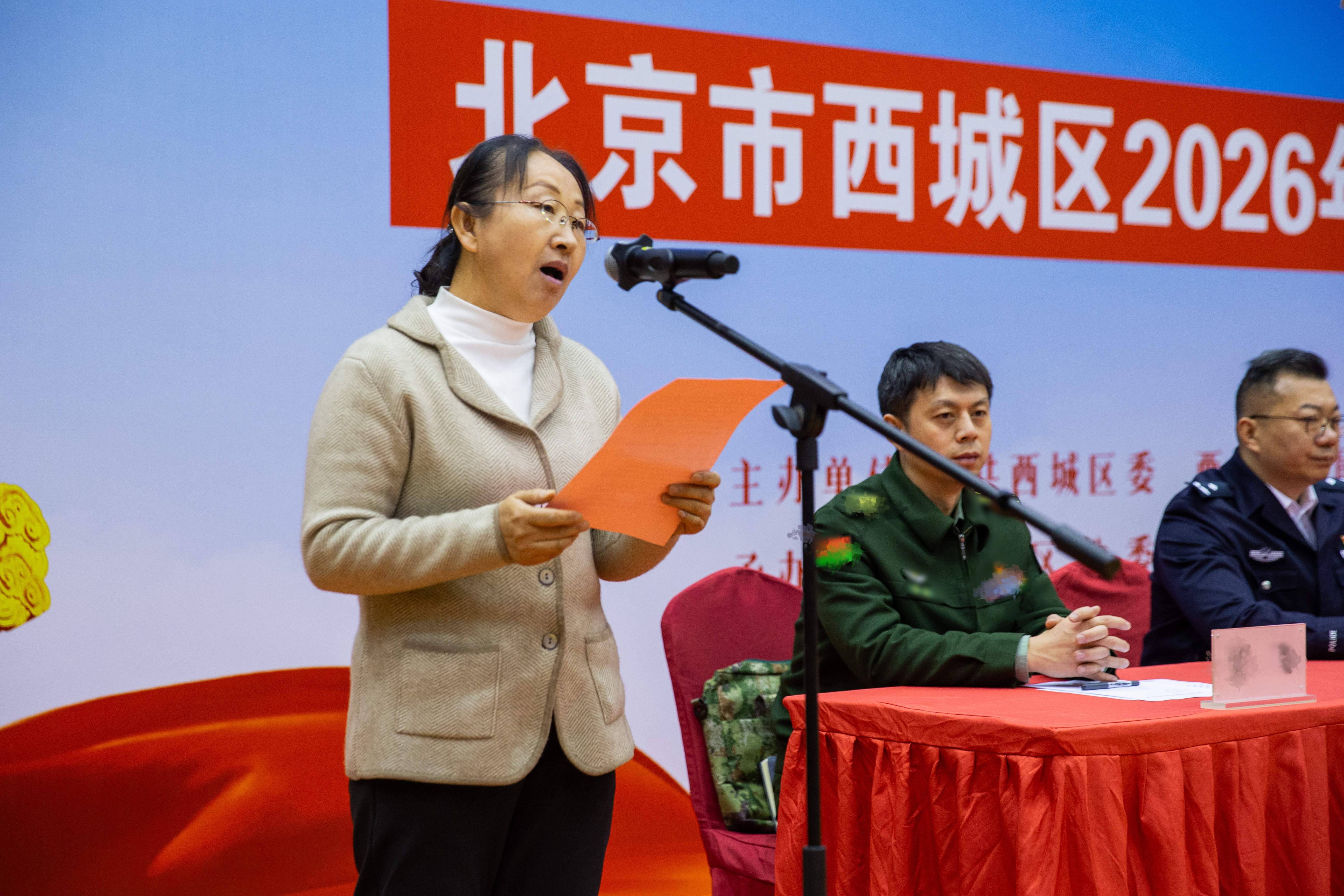 仝叶英作为西城区入伍大学生家长代表发言。她向西城区人民政府、人民武装部和学校送上最诚挚的感谢。作为一名新兵家长,同样也是一名军人家属,她表示最骄傲的就是看着儿子在今天穿上笔挺的军装,戴上光荣的大红花,即将踏上从军报国的路。她向全体新兵送上寄语:一是希望孩子们到部队后听党指挥、严守规矩,团结战友,做让家人放心的好战士;二是刻苦训练、磨砺意志,在摸爬滚打中锤炼本领、淬炼成钢,做让自己骄傲的硬骨头;三是常怀感恩、不负期望,将家人牵挂化为动力,踏实拼搏,用成绩为家庭、学校和西城区争光,不负青春与戎装。