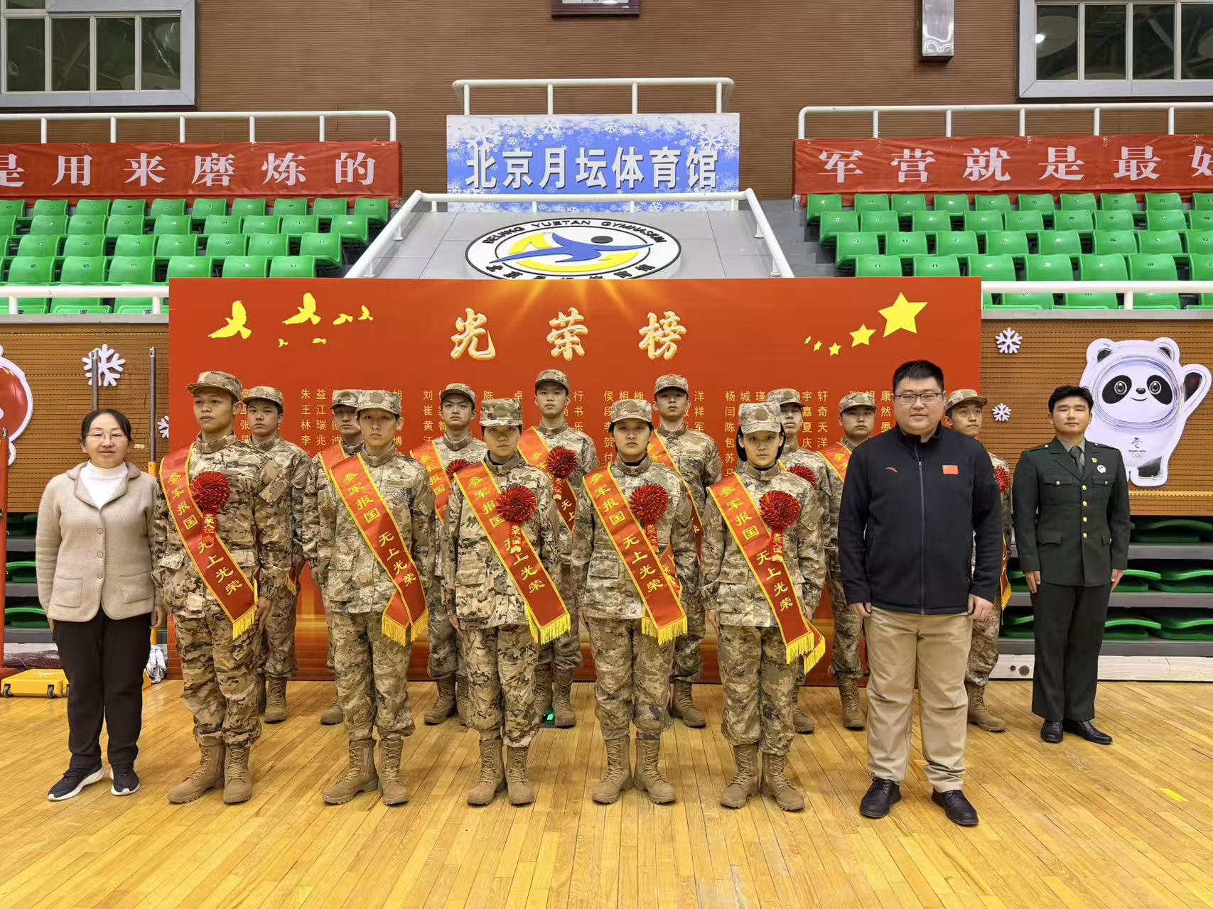3月24日,西城区2026年春季新兵入伍欢送大会在月坛体育场隆重举行,西城区人民政府、人武部及各街道、高校相关领导,全体入伍新兵及家长代表参加此次活动。我校退役大学生士兵宋宏康和新兵入伍学生家长仝叶英分别作为代表登台发言。