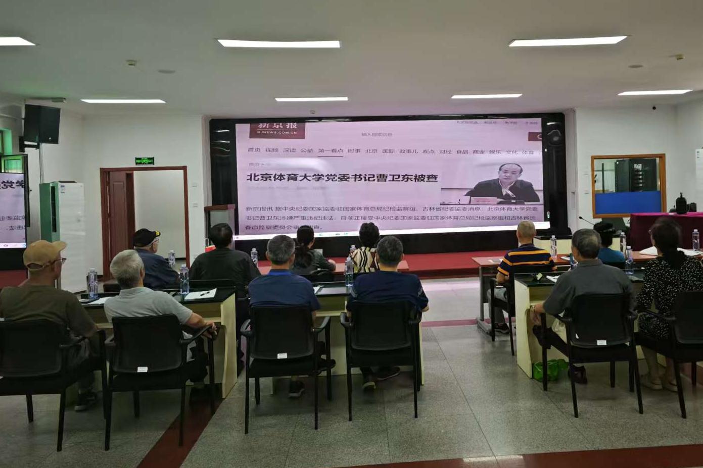 随后,全体参会党员一起观看了教育领域违反中央八项规定精神警示案例,通过这些真实事件的深刻剖析,给党员干部们敲响了警钟。片中一些教育领域的违规违纪行为,让大家深感震撼和警醒。观看结束后,离退休老同志们一致表示将持续深入贯彻中央八项规定精神,不断增强党性修养,提高廉洁自律意识。