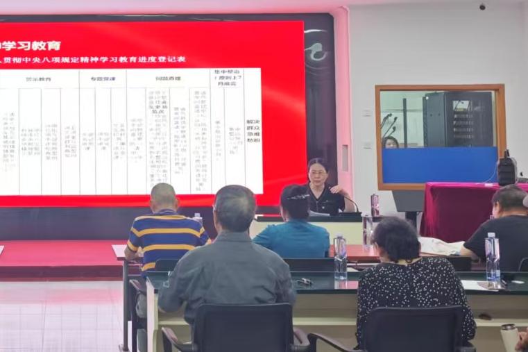 离退休党委书记王红英讲授深入贯彻中央八项规定精神学习教育专题党课