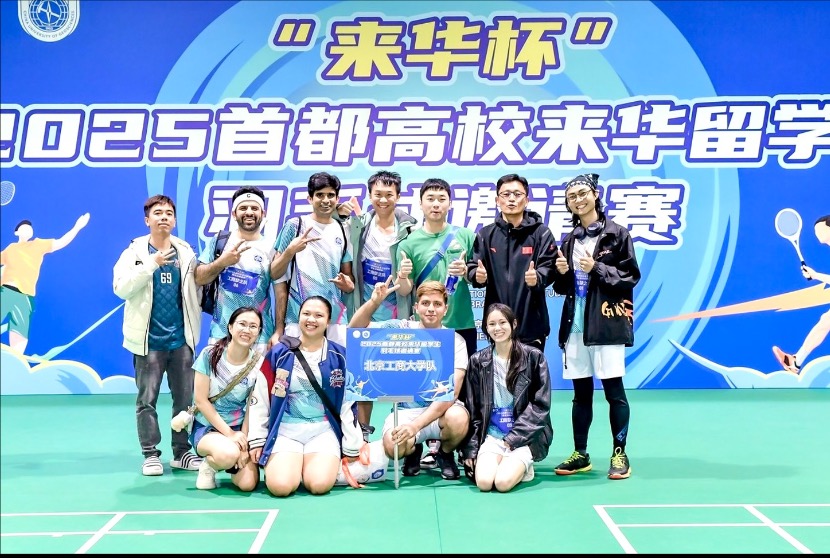 5月10日,由北京市高等教育学会外国留学生工作研究会主办的“来华杯”2025首都高校来华留学生羽毛球邀请赛在中国地质大学(北京)举行,来自北京26所高校的32支参赛队伍、200余名中外学生齐聚一堂,共同参与这场赛事。我校来华留学生羽毛球队顽强拼搏,挺进八强并斩获第五名的好成绩。