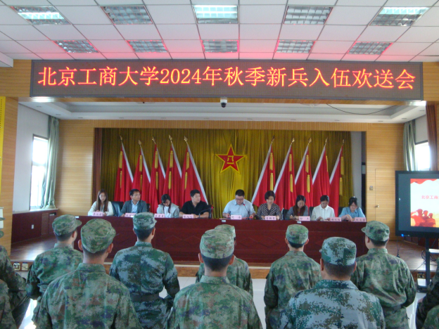 9月25日,北京工商大学2024年秋季退伍大学生欢迎暨入伍新兵欢送会在西城区民兵训练基地举行,欢迎8名秋季退伍大学生回归母校,同时为即将踏入军营的30名新兵送行。学生处副处长兼武装部副部长党浩、武装部工作人员、相关学院辅导员、秋季退役士兵代表、入伍新兵和“战友协会”代表参加此次活动。