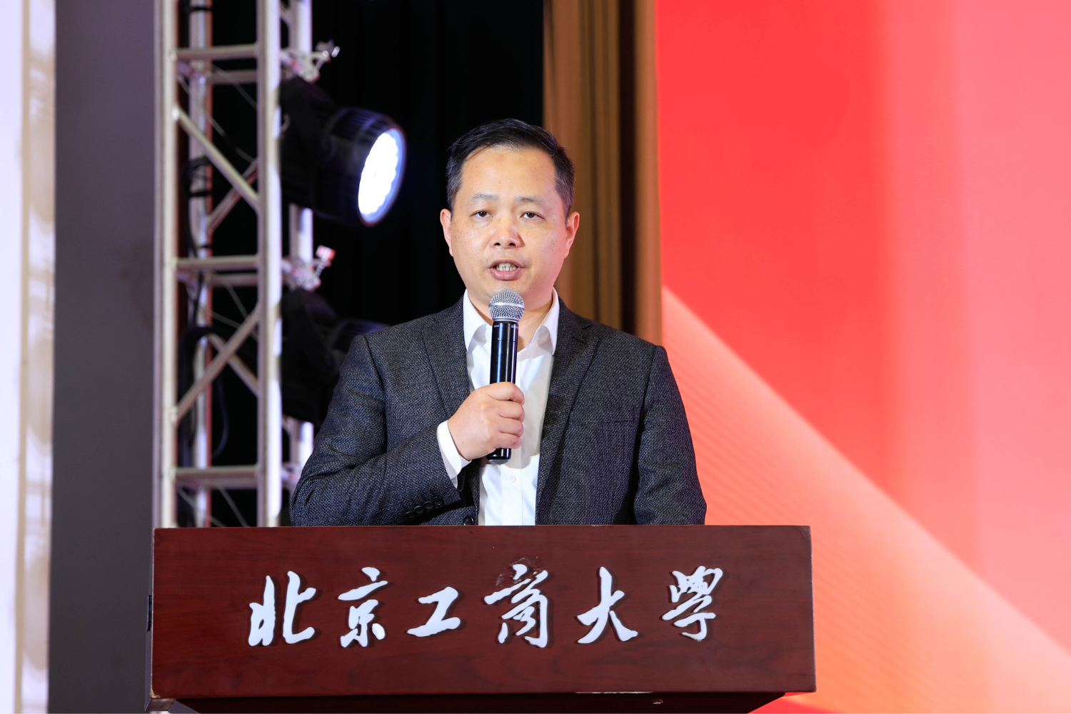 北京味食源食品科技有限责任公司董事长助理兼研发总监、北京市劳动模范严江在发言中首先向获奖学生表示热烈祝贺,并对学院的培养致以敬意。他回顾了自2011年设立“味食源奖学金”以来与学院在人才培养方面的合作历程,强调食品行业的生命力在于创新,而创新的根基在于人才。他分享了两点心得:保持对“味道”的敬畏,让创新兼具科技与温度;坚守对“创新”的执着,勇于在解决实际问题中实现价值。严江表示,公司将持续深化与学院的产学研合作,提供更多实践平台,共同推动食品行业高质量发展,并祝愿学子们学业有成,学院再创佳绩。