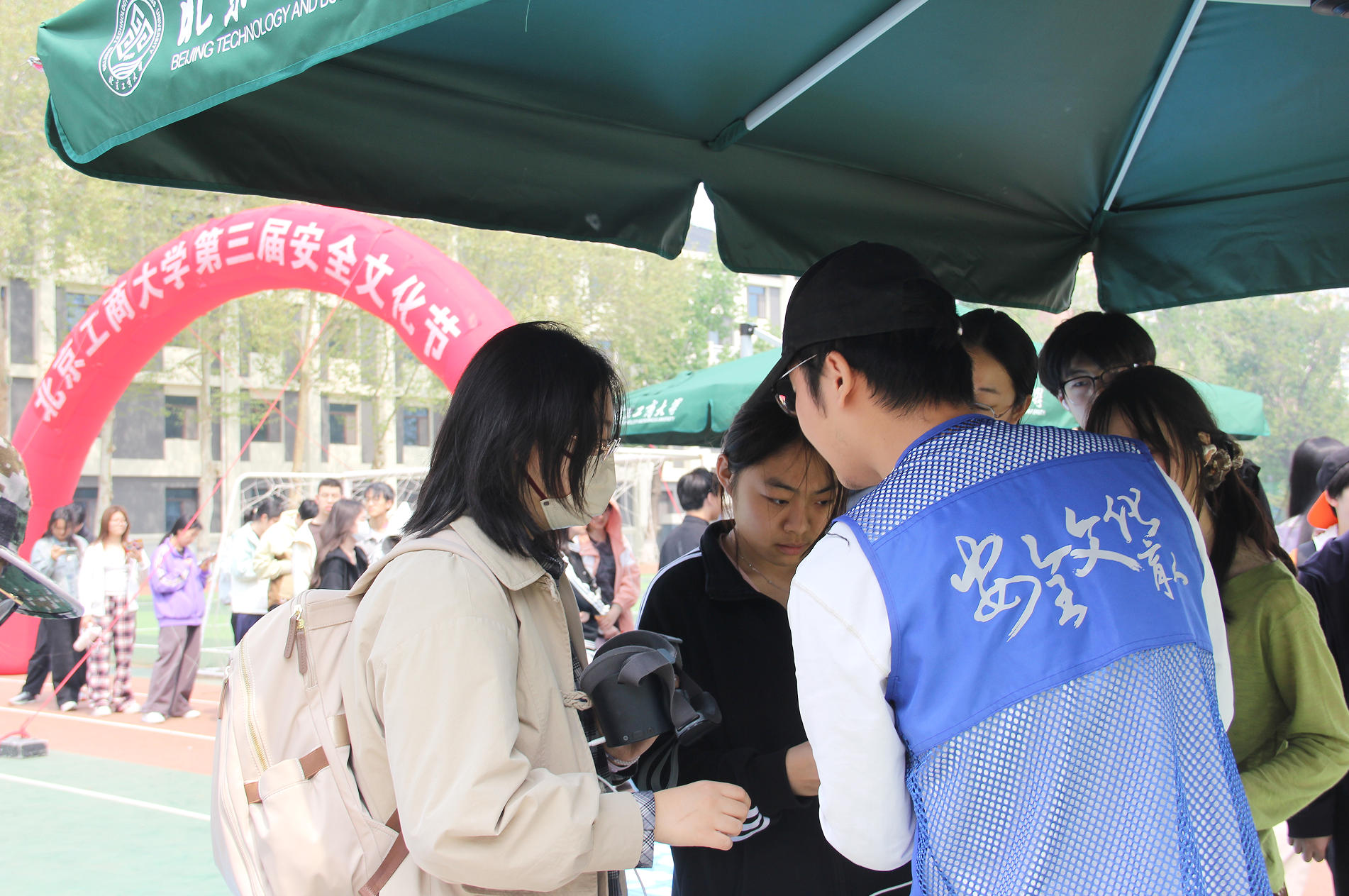 与主会场活动同步,阜成路校区东区操场举办了第三届“安全文化节”互动体验活动。活动现场气氛热烈、人头攒动,七项特色互动体验活动吸引了广大师生踊跃参与。国家安全我守护倡议签名区前,同学们有序排队、郑重签名,以实际行动表达守护国家安全的坚定决心;反诈套路我来套、国家安全知识竞赛盲盒、国家安全大转盘等趣味环节,让师生在轻松愉悦的氛围中学习国家安全知识、提升安全防范意识;交通安全VR情景体验、醉酒行走体验、海姆立克急救实操等体验类活动,让师生沉浸式掌握安全技能,切实提升应急处置能力。整场活动兼顾教育性与趣味性,现场欢声笑语不断,进一步推动安全理念深入人心,营造了“人人讲安全、事事为安全、时时想安全、处处要安全”的浓厚校园氛围。